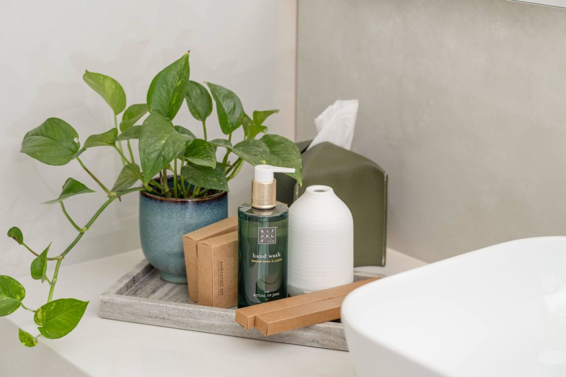 A separate lounge with a home cinema system provides an ideal space for movie nights, while thoughtful touches such as a hospitality set with toiletries, slippers, and aromatherapy devices enhance the spa-like experience. Pool towels are also provided for guest convenience.