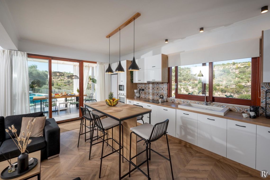 The outdoor area is perfect for both relaxation and entertaining. A private swimming pool is set within a spacious terrace, complemented by a patio and BBQ area ideal for al fresco dining. Guests can also enjoy the villa’s private fitness room. Rethymno Beach is just 2.2km away, and the Archaeological Museum of Rethymno is 3.2km from the property. Chania International Airport is 37km away, while Heraklion Airport is approximately 65km from the villa.
