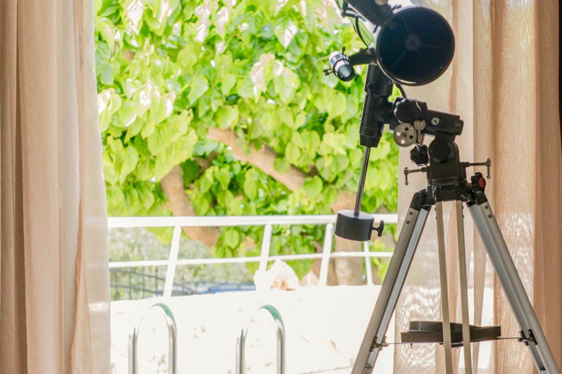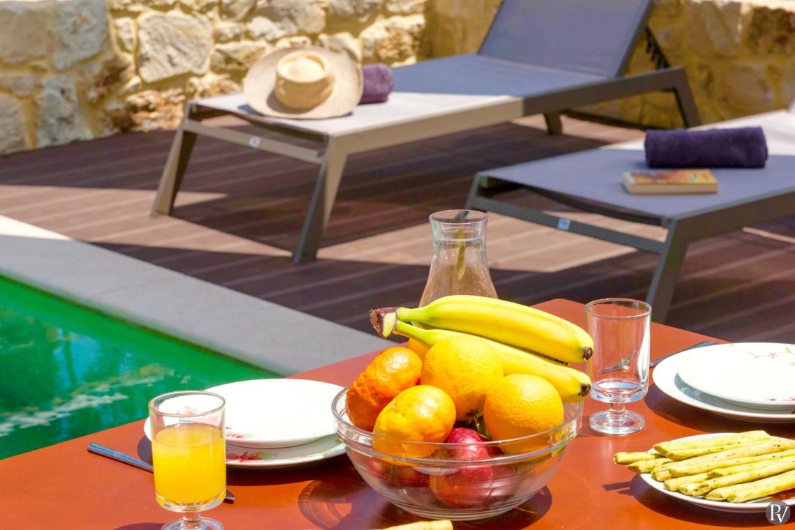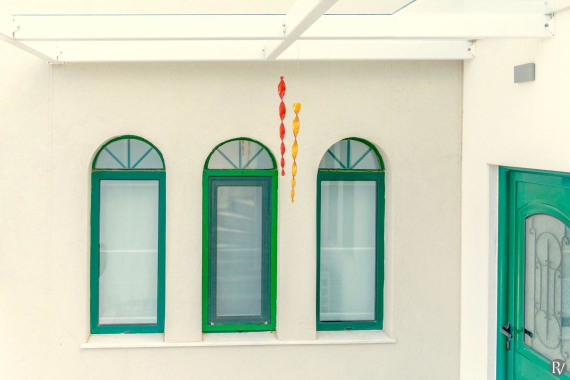 The whitewashed exterior of Villa Murta has been beautifully designed to blend with the surrounding landscape, incorporating large terraces, arches, and subtle influences from Cycladic architecture.
