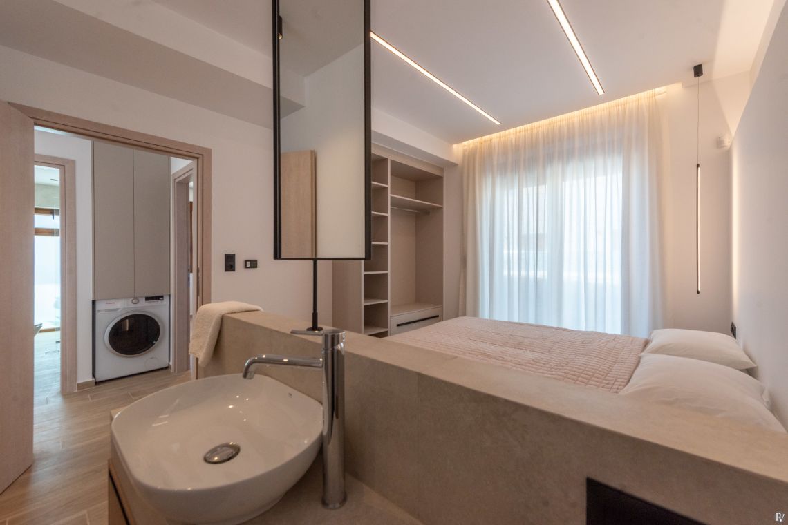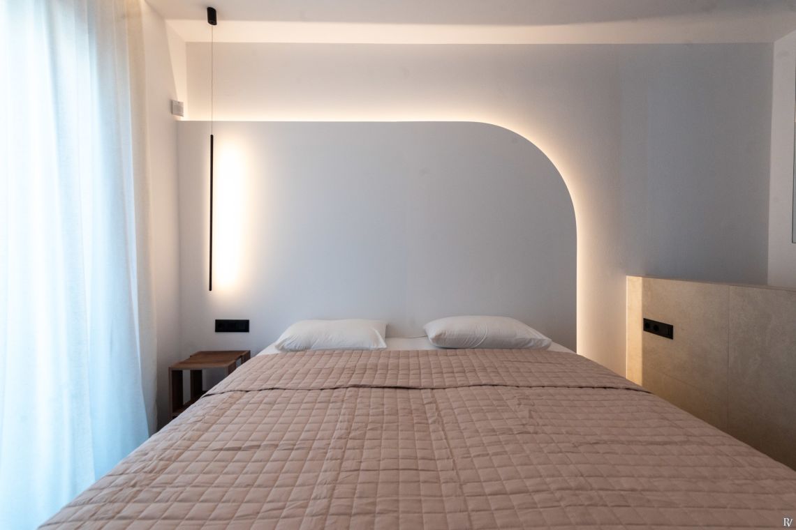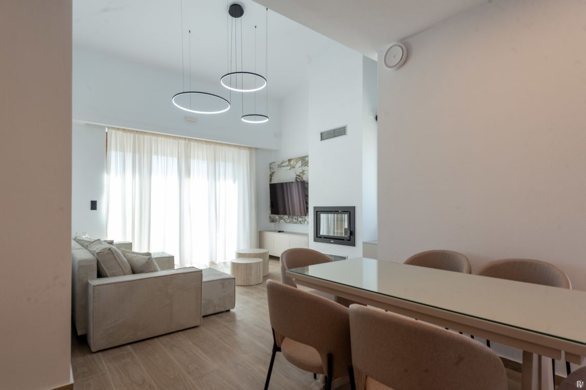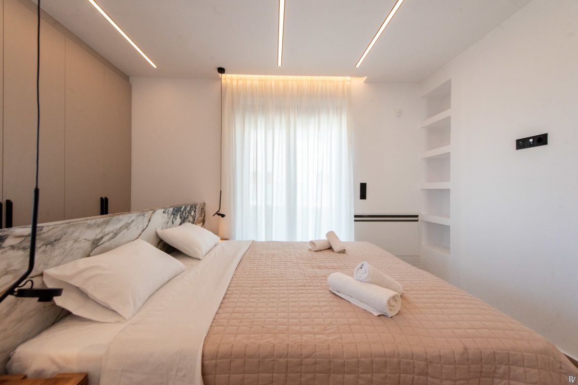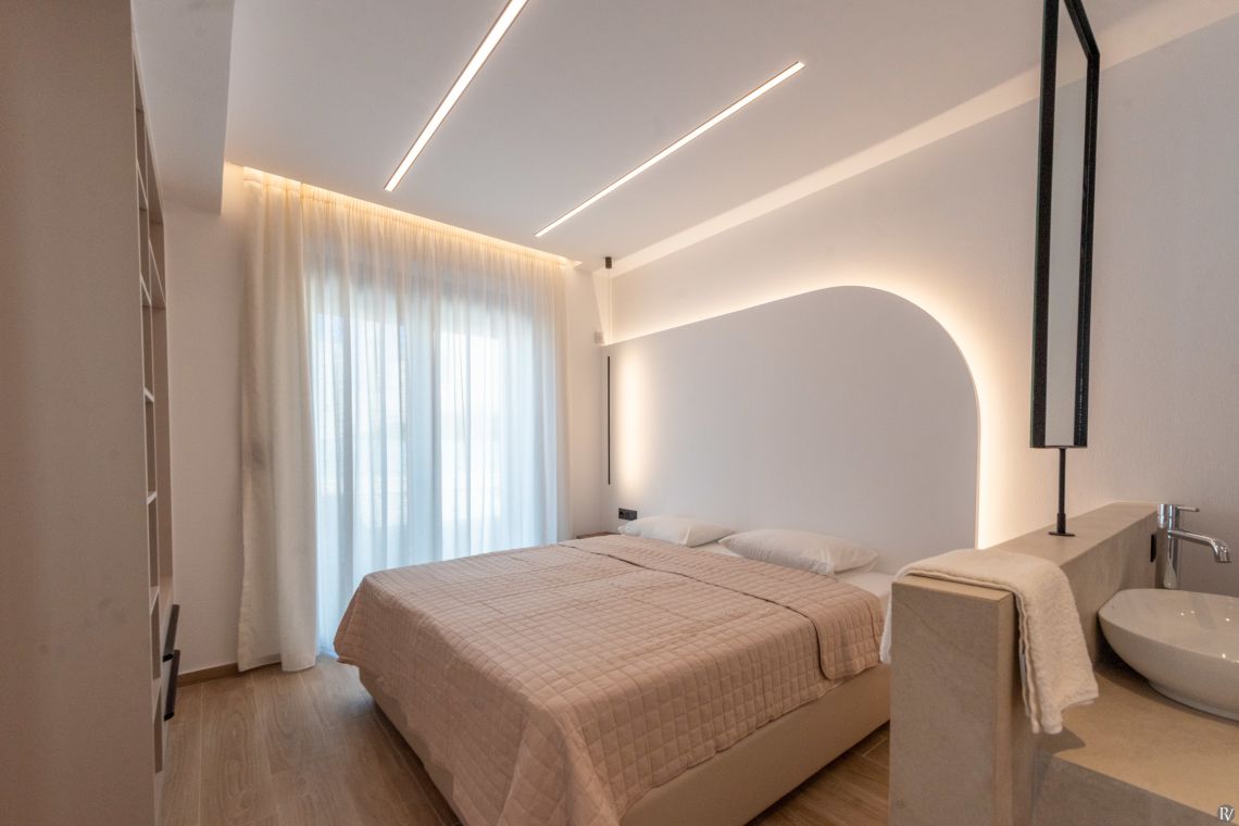 The villa’s fully enclosed garden and sunlit terrace provide a tranquil outdoor setting. Guests can relax by the private pool with its gentle water curtain, dine al fresco, or simply enjoy the peaceful surroundings. Despite its seclusion, local tavernas, beaches, and Rethymno town are just a short drive away, combining convenience with complete privacy.