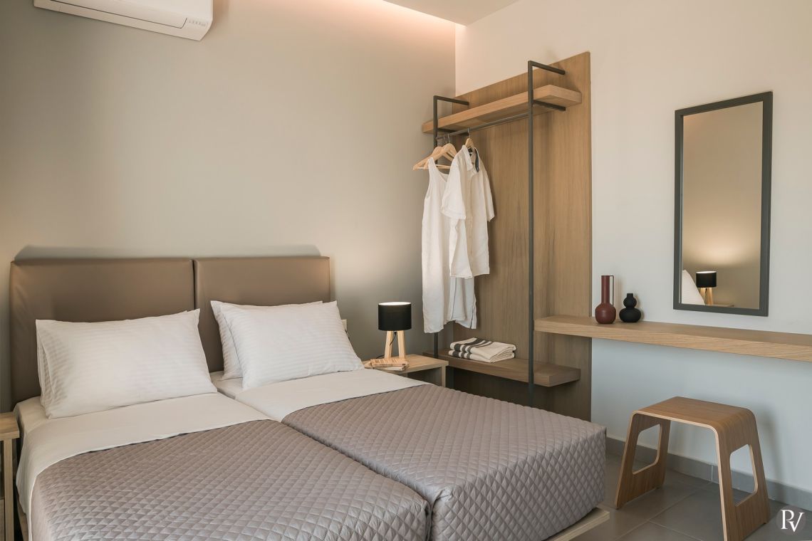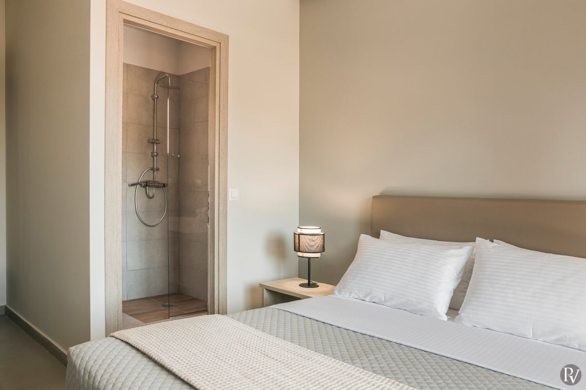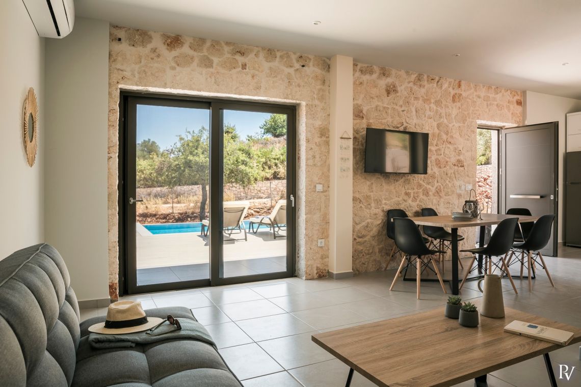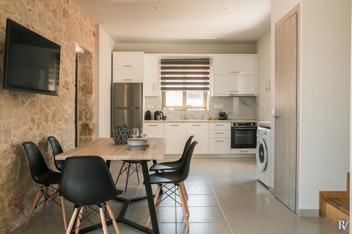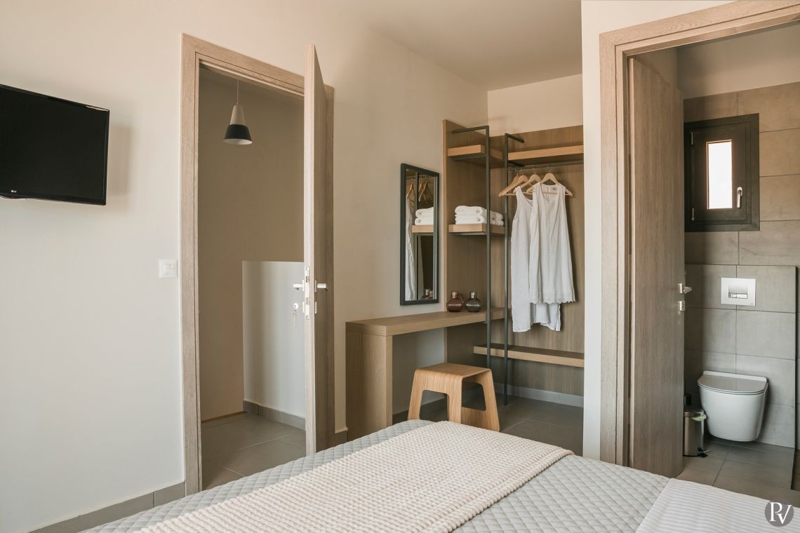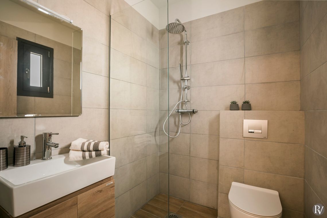 Comfortably furnished in soft, natural hues, Lithos Skala 1 feels bright and welcoming, making it an ideal holiday home for four to six guests with the addition of two sofa beds in the living space. The ground floor also includes a convenient guest WC.