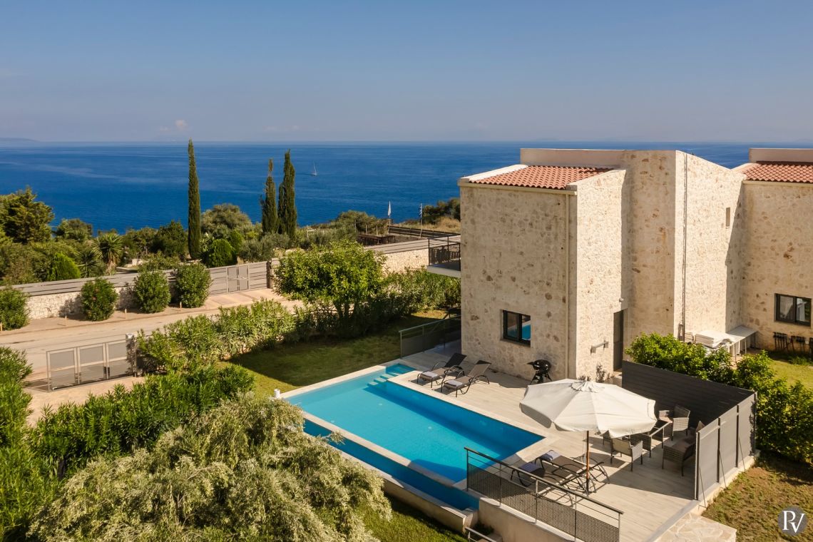 Backed by rolling hills and overlooking the azure Ionian Sea, Lithos Skala 1 is a stunning new villa built from locally sourced stone and set within its own lush private garden. Just under 2 km from the nearest small beach, perfect for swimming, and less than 5 km from both the centre of Skala and the charming port town of Poros, a wealth of amenities and facilities are only a short drive away.