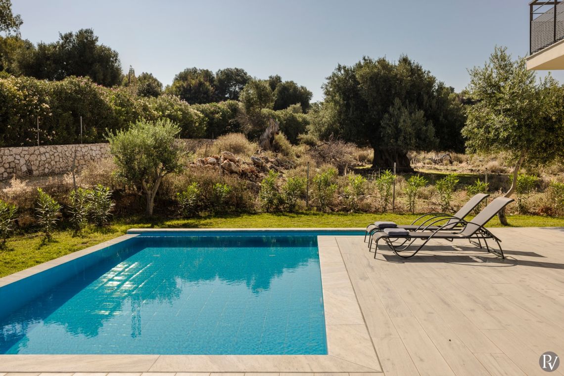 Backed by rolling hills and overlooking the azure Ionian Sea, Lithos Skala 3 is a stunning new villa built from locally sourced stone and set within its own lush private garden. Just under 2 km from the nearest small beach, perfect for swimming, and less than 5 km from both the centre of Skala and the charming port town of Poros, a wealth of amenities and facilities are only a short drive away.