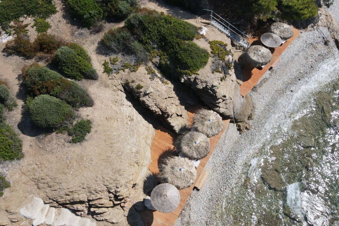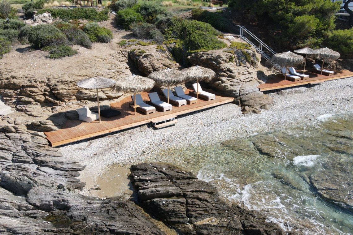 On one side, the breath-taking view of the lush dense Mount Athos of Sithonia with pine and olive trees will impress you. On the other side, the view on the turquoise waters of the Aegean Sea and the exclusively private beach provide the background of the perfect setting for your stay.