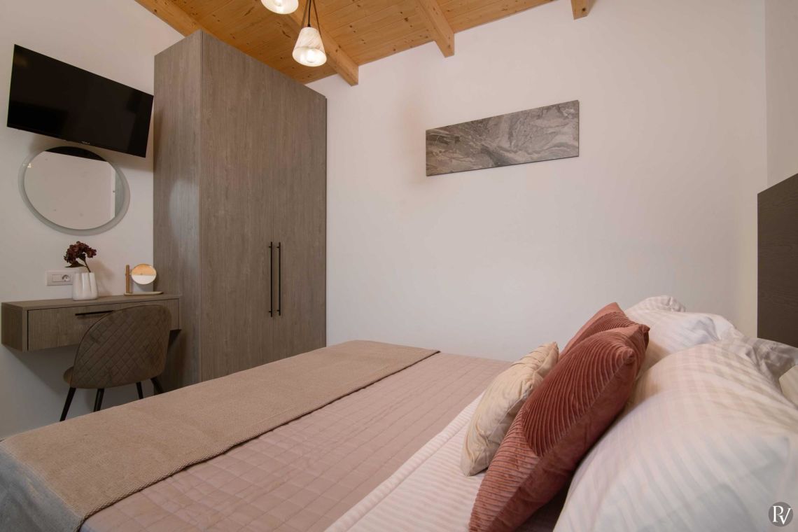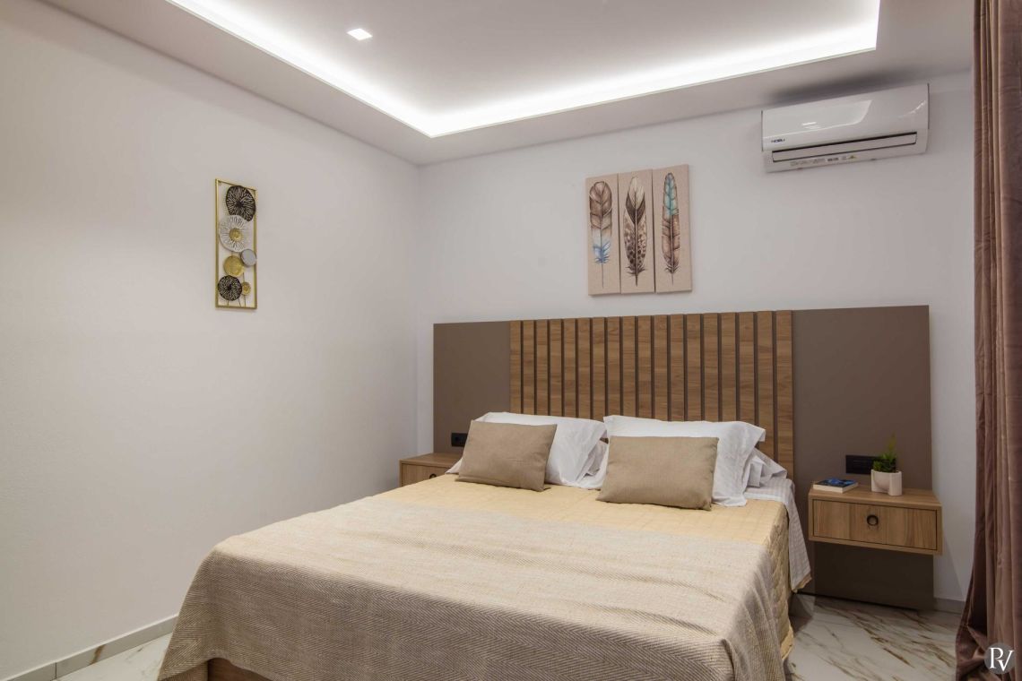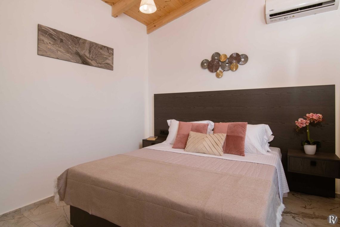 Koza Villa 2 features four beautifully appointed bedrooms, thoughtfully arranged across two floors. Two bedrooms are located on the ground floor and two on the first floor, offering comfort and privacy for all guests.