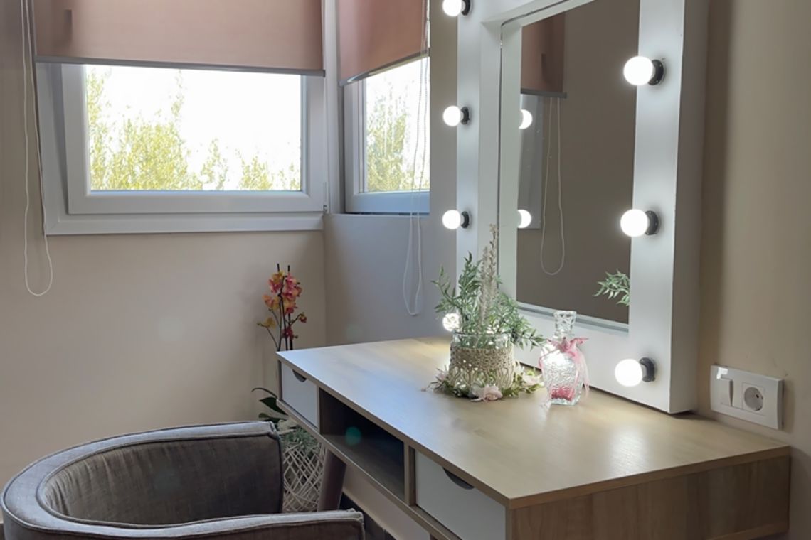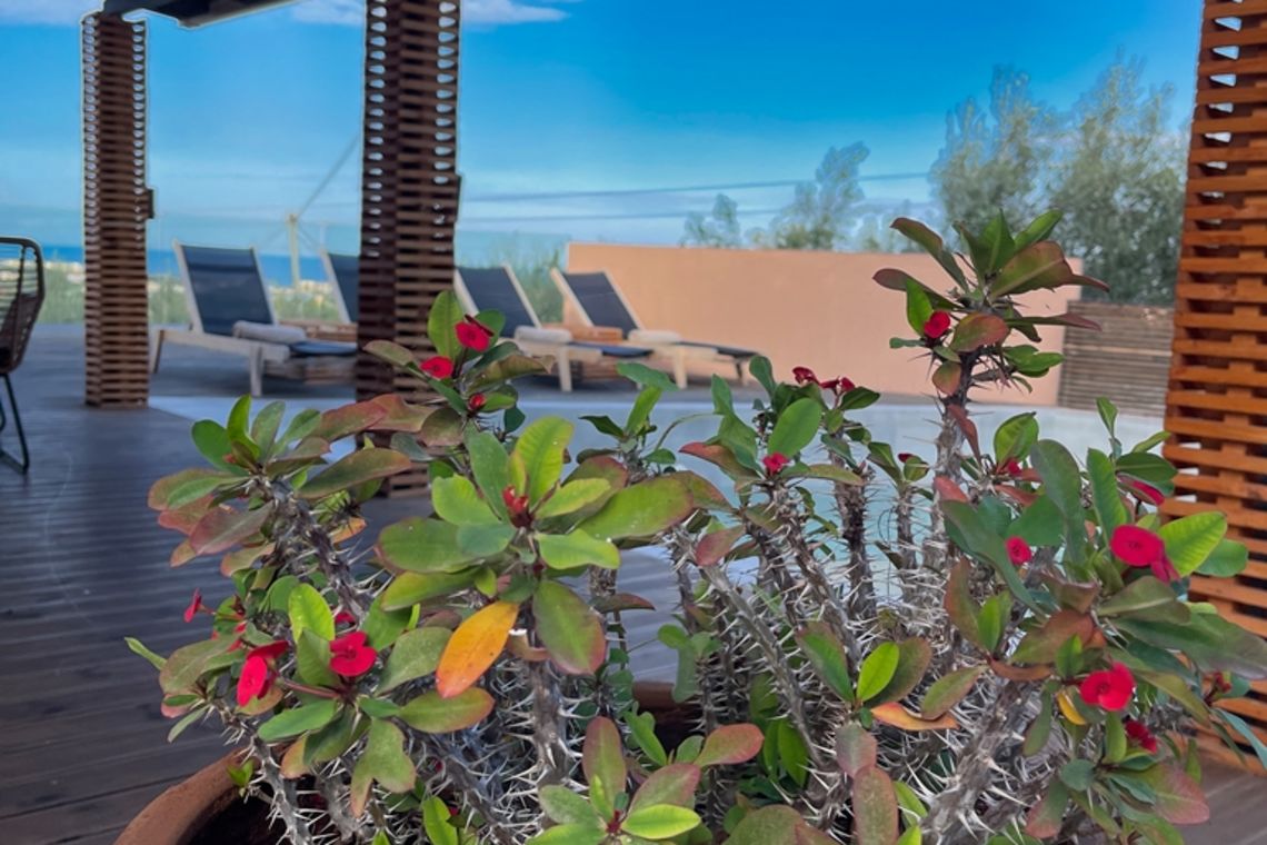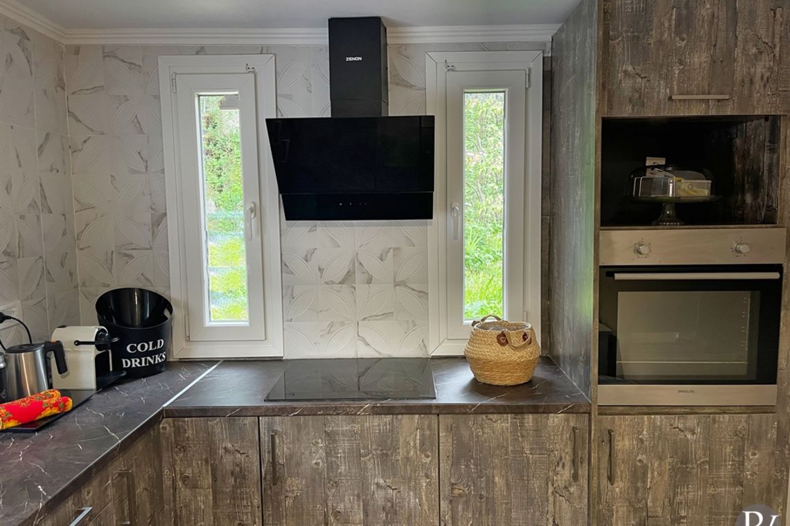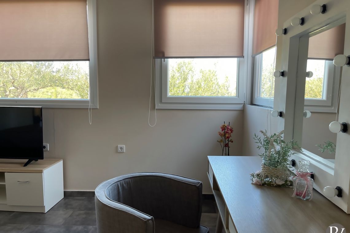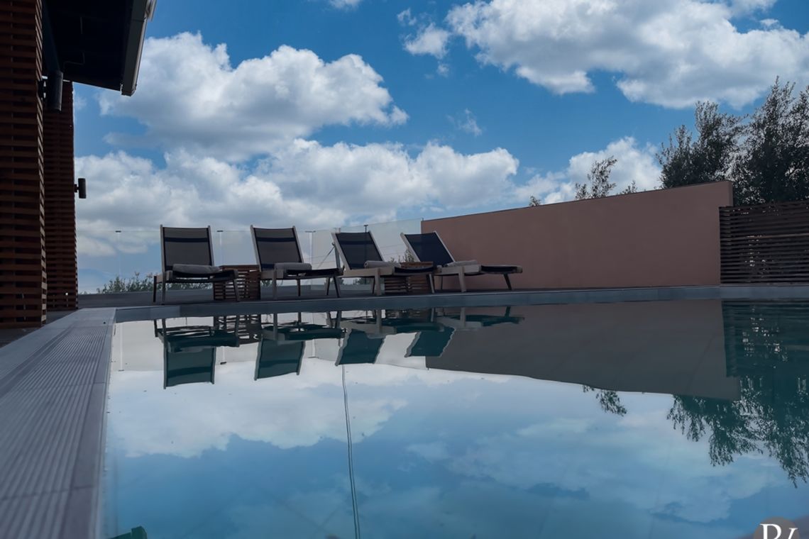 The interior of Villa Elysian Blue is modern, bright, and welcoming. The open-plan living area flows directly onto the pool terrace, creating a seamless indoor–outdoor living experience. A contemporary, fully fitted kitchen offers everything needed for comfortable self-catering, making the villa both practical and inviting for a relaxing stay.