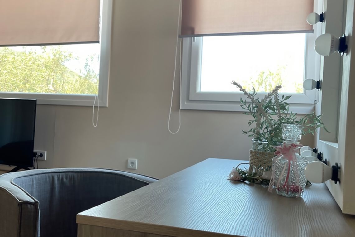The villa features two well-appointed bedrooms. Both rooms are furnished with twin beds that can be seamlessly linked to form spacious double beds, offering flexible sleeping arrangements. Two modern shower rooms complete the interior facilities, ensuring comfort and convenience for all guests.