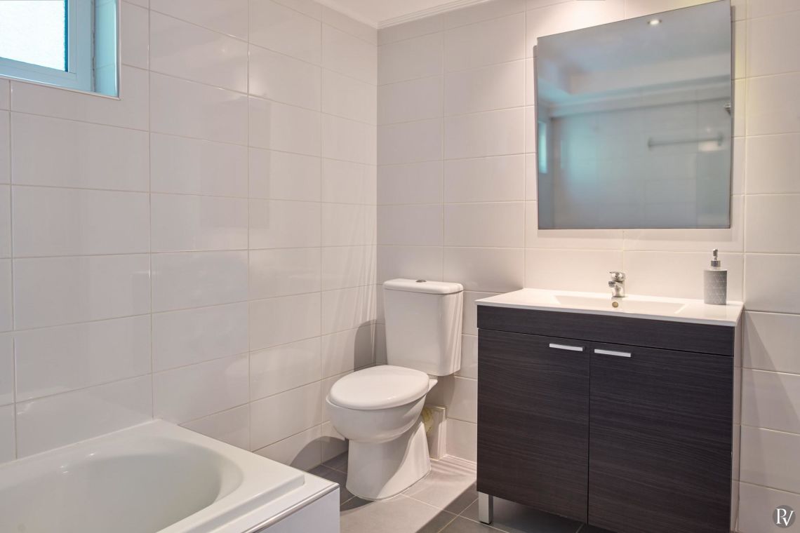 Step outside to enjoy a private garden and swimming pool, perfect for lounging or cooling off in the sun. The enclosed terrace includes a barbecue area, seating, and dining space for alfresco meals. Guests can also access the communal pool within the complex, complete with a pool bar for socializing and enjoying refreshing drinks.