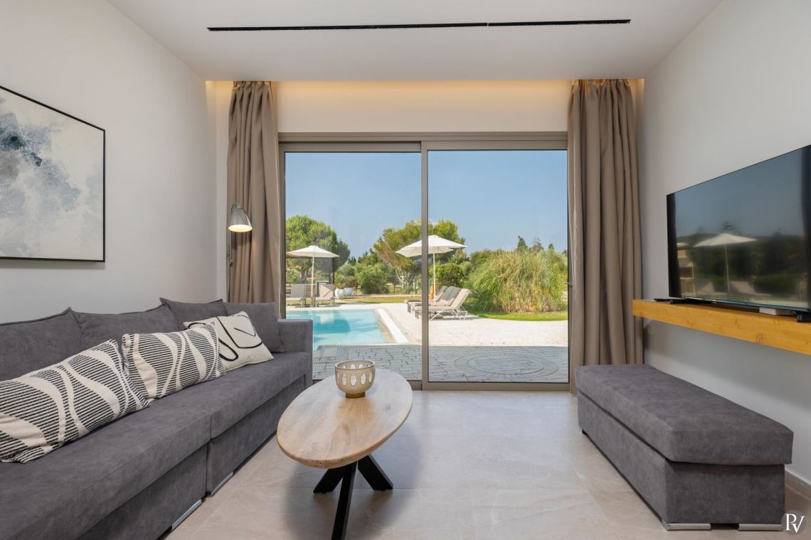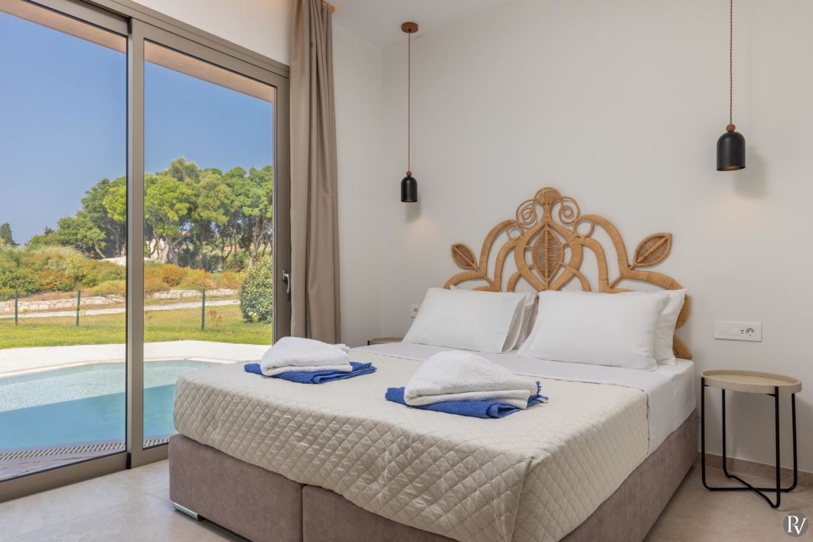 Villa Ismini Caretta features four beautifully designed bedrooms, each with a comfortable double bed and a private en-suite bathroom. These elegant rooms provide a peaceful sanctuary, ensuring maximum comfort and privacy for every guest.
