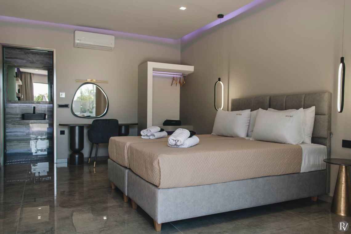 Villa Jovie is a stylish private retreat set in the peaceful seaside village of Alykes on Zakynthos. Designed with elegance and comfort in mind, the villa accommodates up to six guests and offers a relaxing escape just a short walk from the beach, traditional tavernas, and local shops.