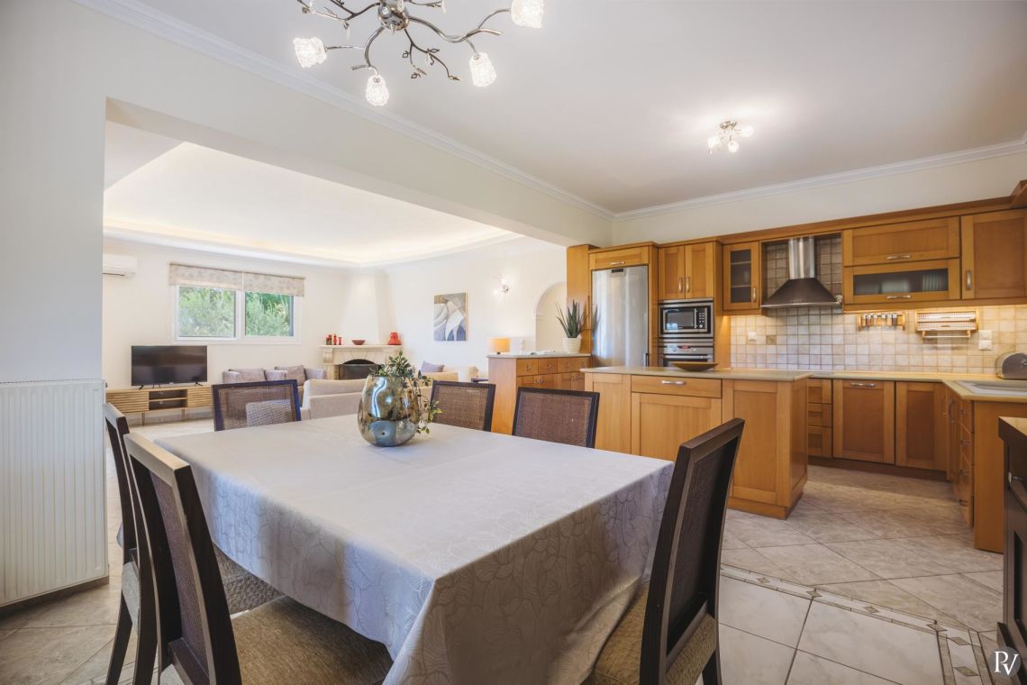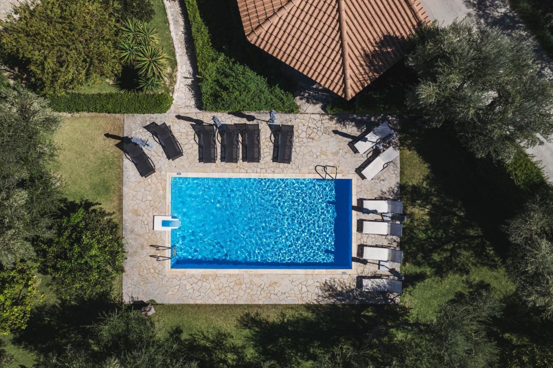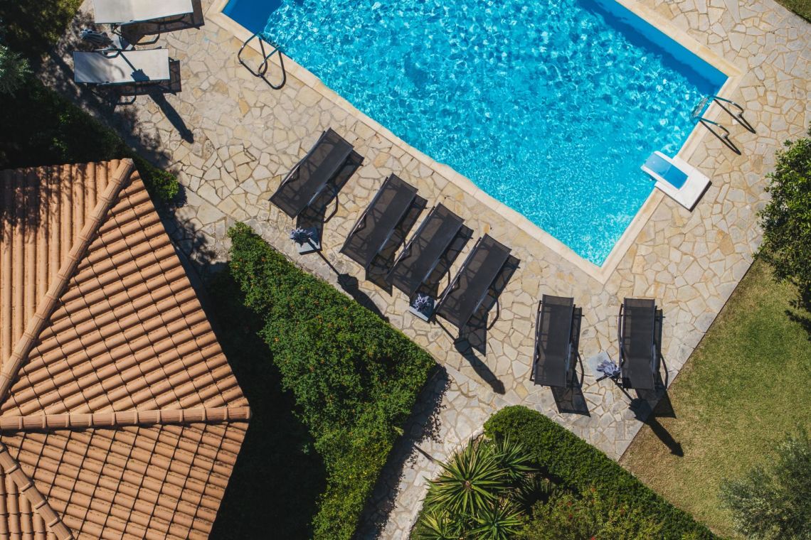 The outdoor areas are designed for relaxation and Mediterranean living. A private 55 sq. m swimming pool (depth under 1.5 m) is surrounded by 9 umbrellas and 6 sunbeds, as well as an outdoor shower for added convenience.