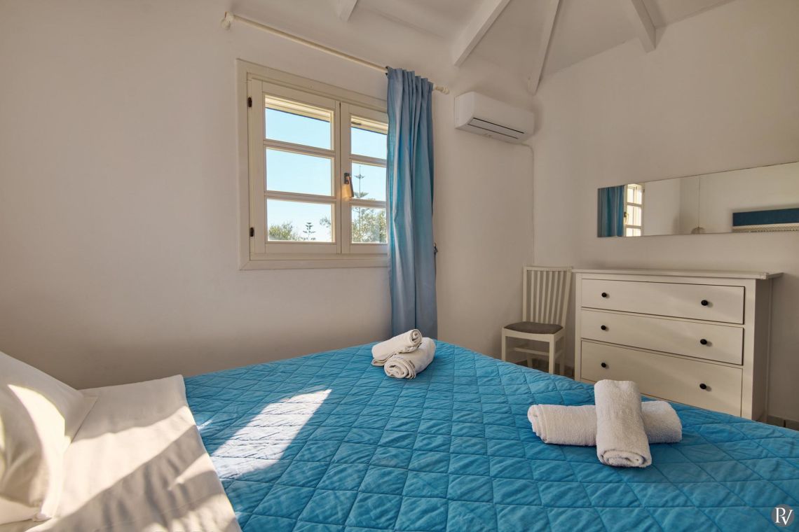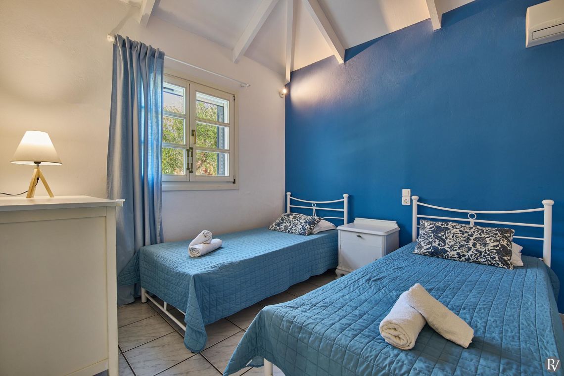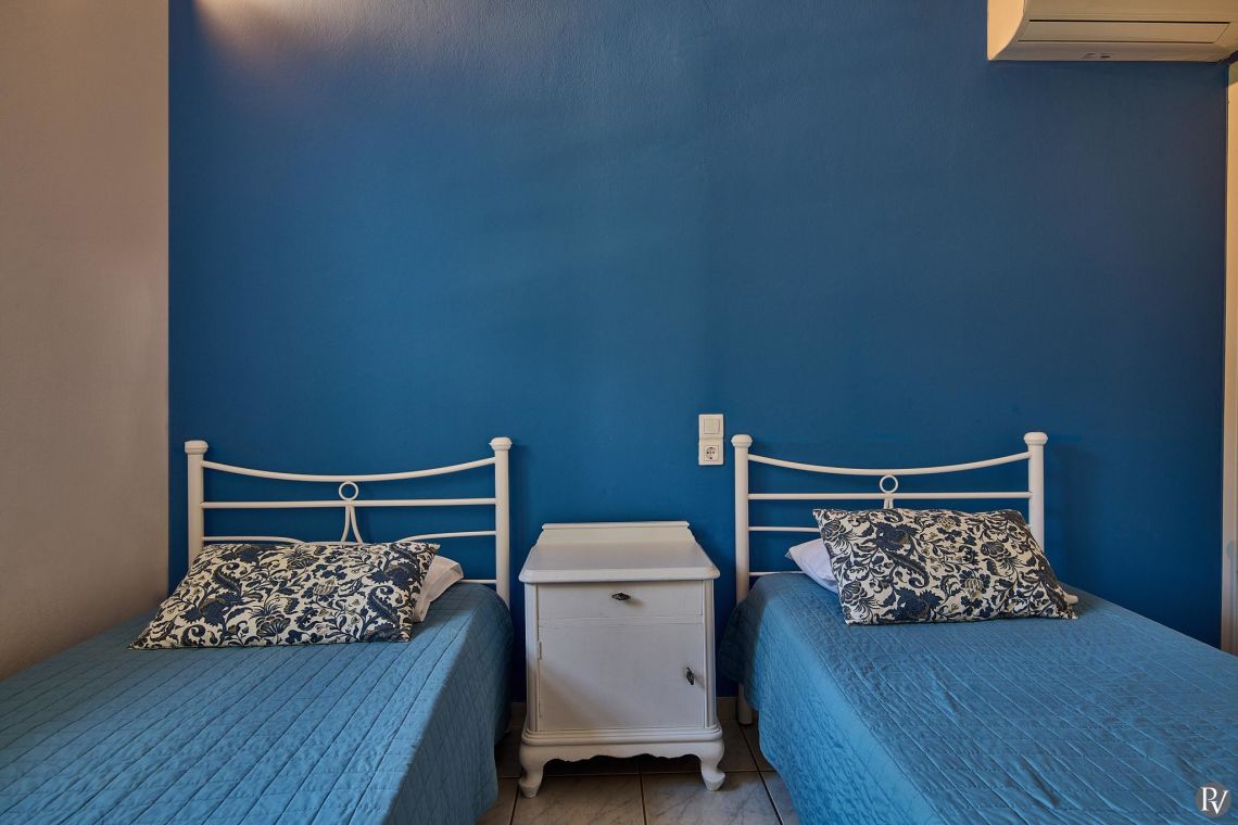 Villa Thalia Caretta offers two well-appointed bedrooms. One bedroom is furnished with a comfortable double bed, while the second bedroom includes two single beds, making it ideal for families or small groups of friends.