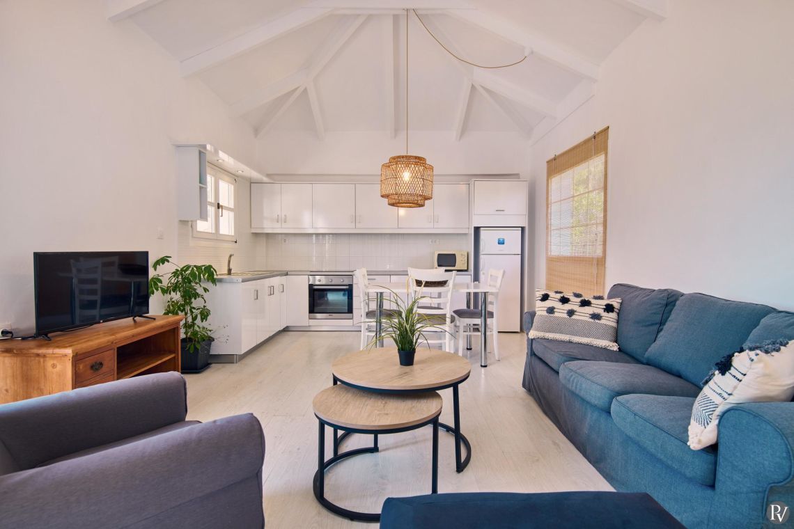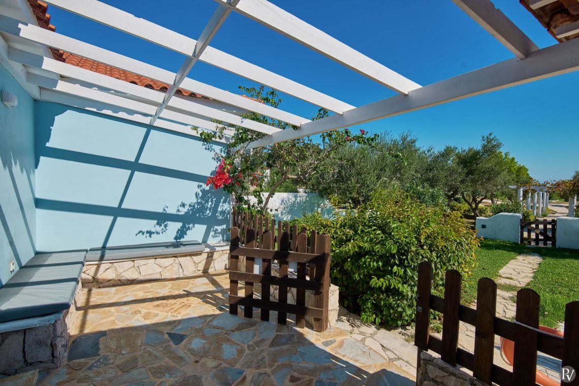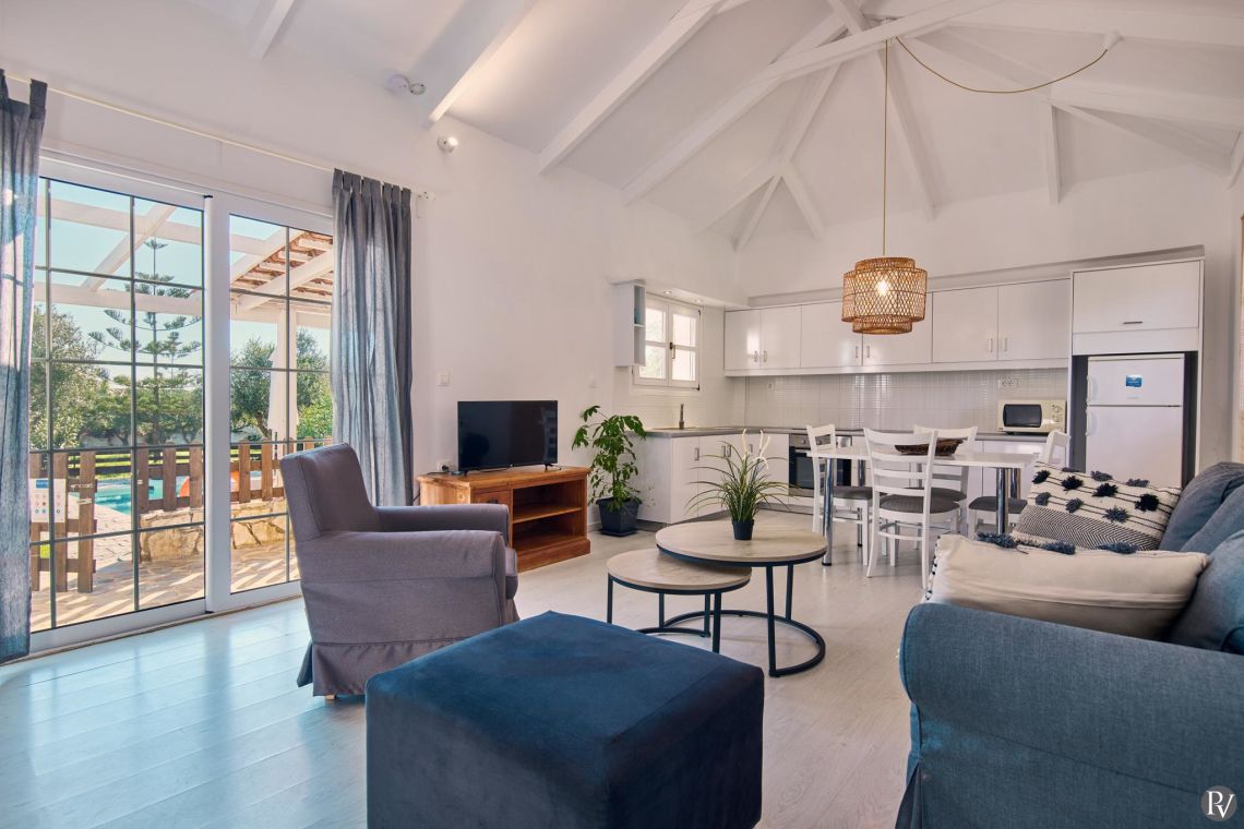 Villa Thalia Caretta is a beautifully spacious 2-bedroom villa covering 80 sq.m., making it one of the largest properties in the complex, both indoors and outdoors. Designed with comfort and relaxation in mind, it offers generous living areas and serene surroundings for a memorable stay.