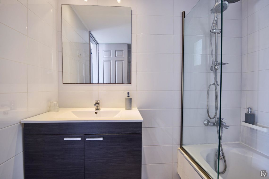 The villa features a bright open-plan layout that seamlessly combines the living area, dining space, and fully equipped kitchen, creating a warm and welcoming atmosphere. The bathroom is thoughtfully designed and includes both a bathtub and a shower, ensuring flexibility and convenience for guests.