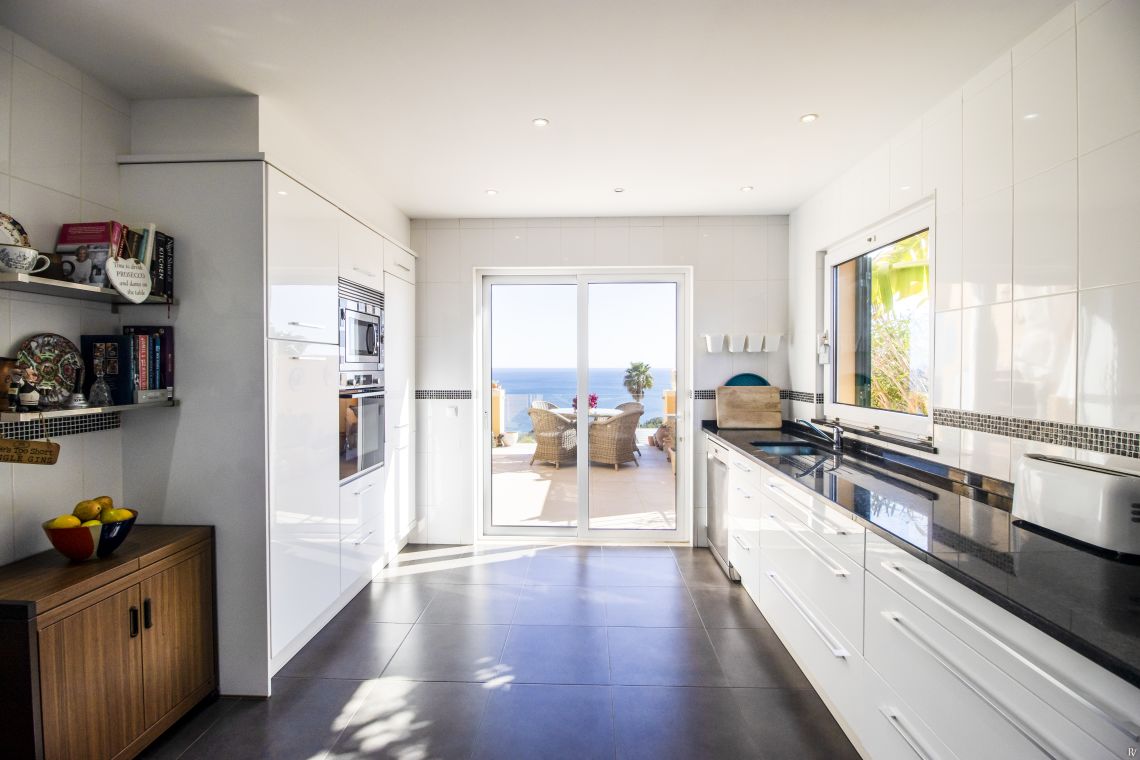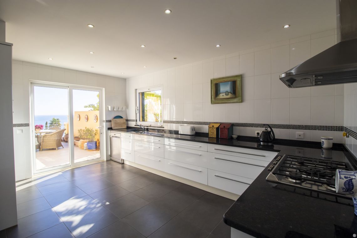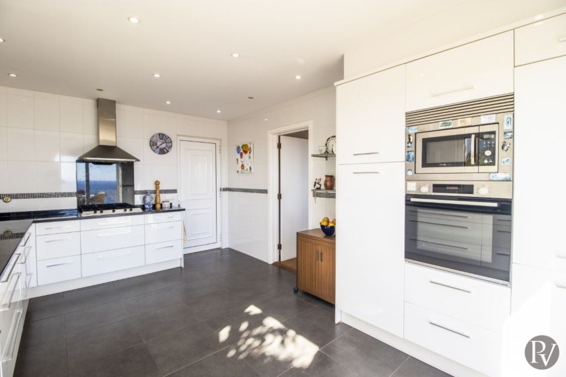 The entrance level features a spacious living/dining room with patio doors opening to the terrace, overlooking the pool. The large, fully equipped kitchen also opens to the terrace and BBQ area, ideal for al-fresco dining with sea views.