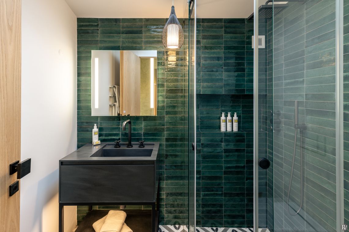 Bedroom 4 (Ground Floor – Master, steps down): Double bed, seating area, and ensuite bathroom