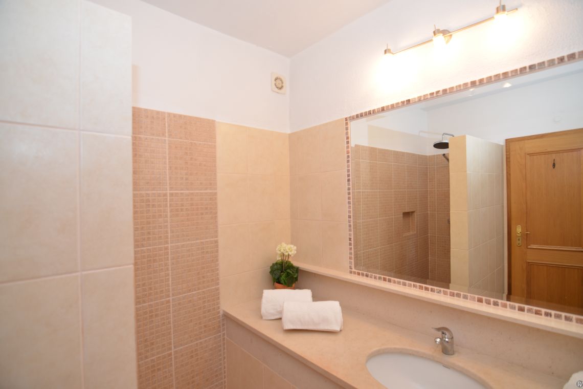 Villa Avelia offers three well-appointed bedrooms comprising a south-facing twin bedroom, a double bedroom with a TV and en-suite shower room, and a master double bedroom with a TV and a safe. In addition, there is a separate bathroom with a bathtub and bidet, as well as an additional WC with a walk-in shower, providing ample facilities for all guests.