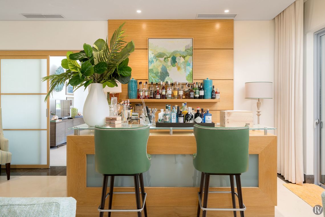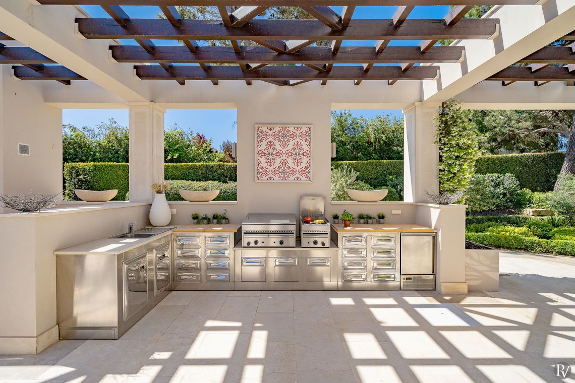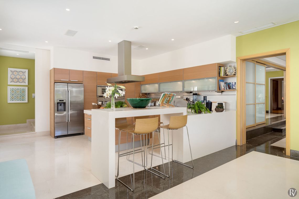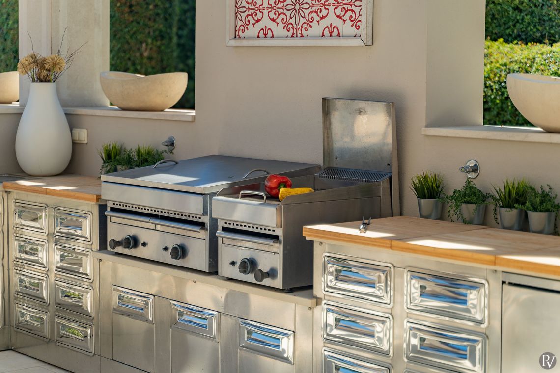 The magnificent exterior of Villa Marisa features a large private free style swimming pool with a slide to a plunge pool and cascade, a jacuzzi and a paddle court. There is also a beautiful “al-fresco” dining area, an outdoor kitchen with gas BBQ and fridge and numerous shaded lounging areas overlooking the golf course where you can relax and rest during the warm summer days.