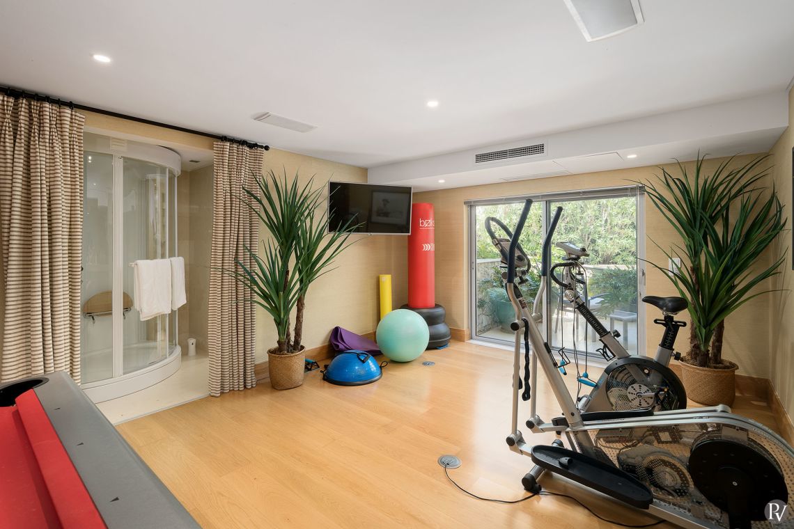 On the first floor we can find 3 further bedrooms. The spacious master suite has a double bed, two different dressing areas and a spacious bathroom with bathtub and shower. There is another en-suite double bedroom with bath and shower. This suite and the master bedroom share a large terrace and lounging area with great views to the beautifully landscaped garden, the golf course and the swimming pool. There is another TV/snug room on this floor, which also has direct access to the terrace. The last bedroom is a double en-suite bedroom with a large shower room. Still on this level we can find an elegant office. The spacious lower level comprises of a fabulous home cinema with recliner chairs and bean bags, a gamesroom with snooker table, bar, steam room and a small gym area.