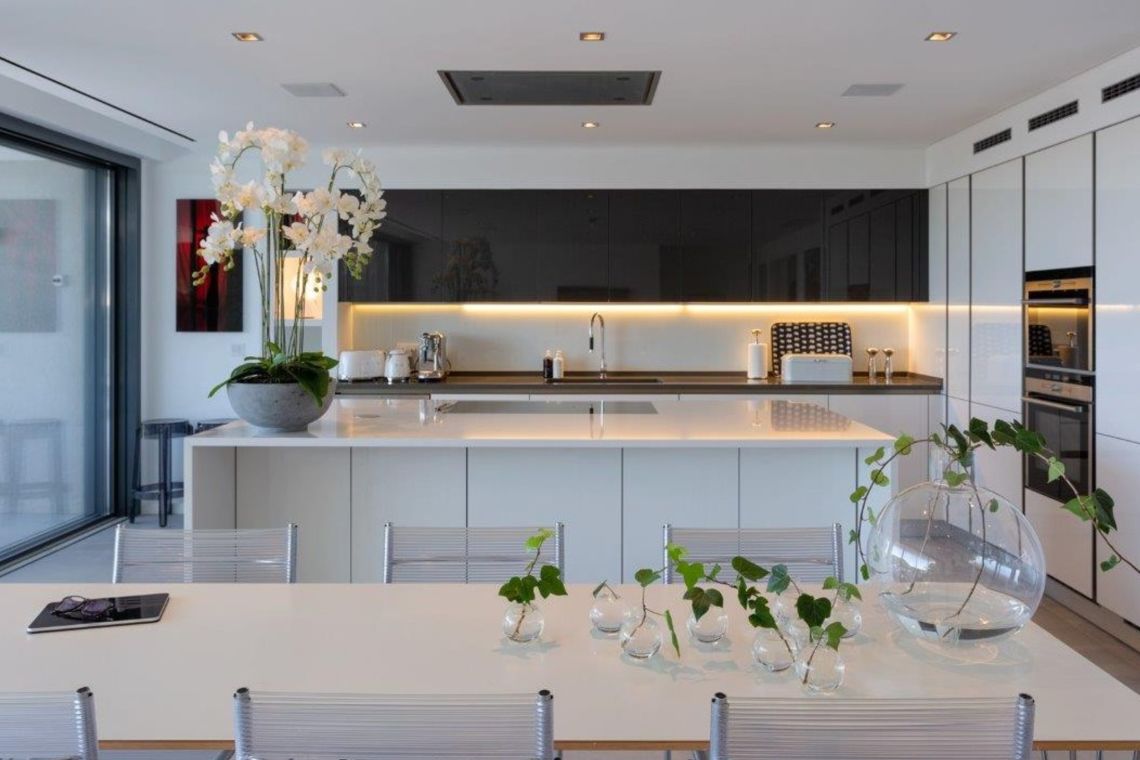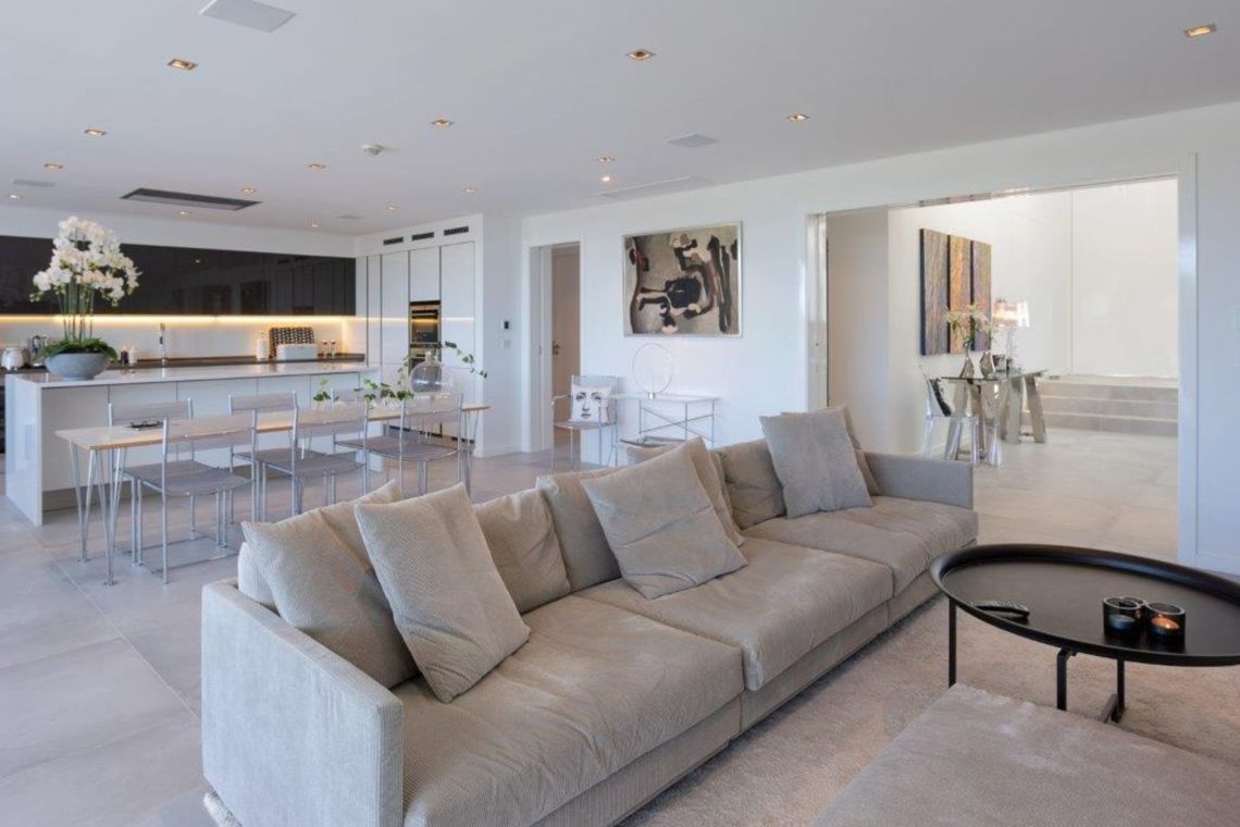 A private infinity pool sits at the heart of the outdoor space, surrounded by a generous sun terrace with ample room for lounging. There is an al fresco dining area with BBQ, as well as comfortable outdoor seating for socialising.