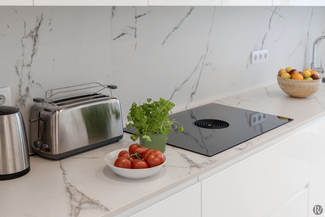 The property compromises a modern and spacious, fully equipped kitchen, a bright open plan dining and lounge area with a large glass door leading to the outdoor area.