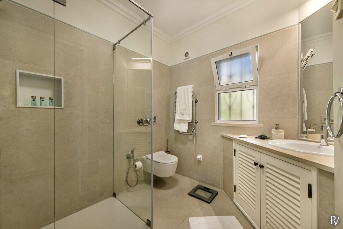 Villa Aurea accommodates guests across three en suite twin bedrooms. One bedroom is located on the ground floor, with direct access to the patio and pool area.