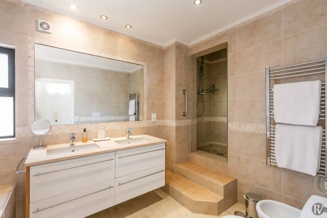 There is one full bathroom adjacent to the twin bedroom and one en suite shower room connected to the master bedroom.