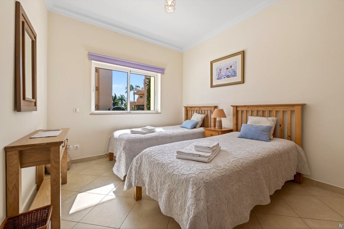 Agueda is a 2-bedroom apartment, ideal for a holiday rental. It is situated on the ground floor facing the pool area. There is a good-sized kitchen, dining table into lounge area. There is a double bedroom and one twin bedroom both en-suites.
