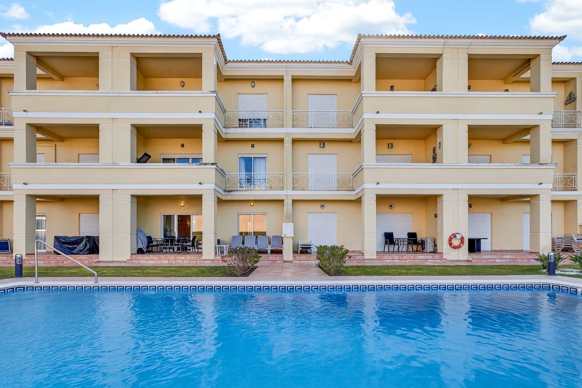 Premier Villas are proud to offer Agueda, a modern 2 bedroom/2 bathroom apartment located next to the Laguna golf course. This well-kept condominium offers a communal swimming pool, separate children’s pool and nice gardens. The apartment is spacious and well equipped. The balcony leading from the lounge and double bedroom overlooks the communal swimming pool, lawned gardens and offers stunning golf course views which is a delightful bonus.