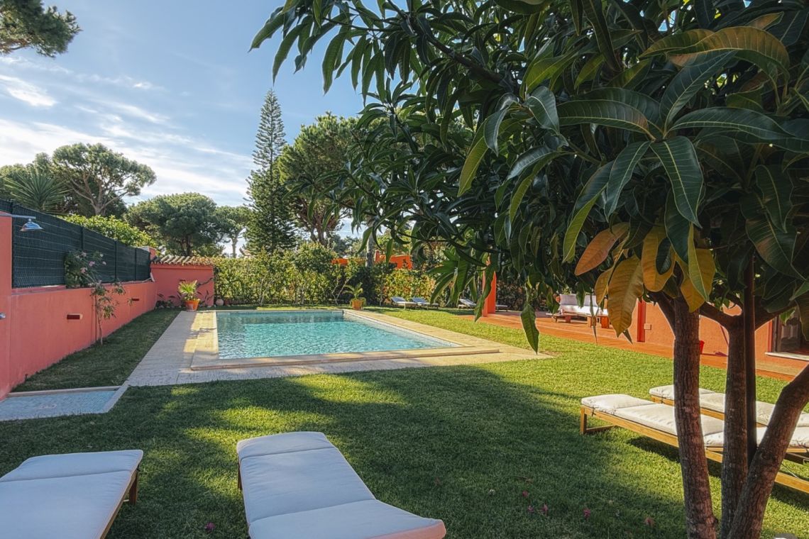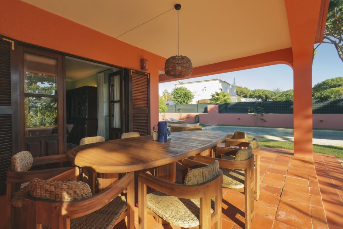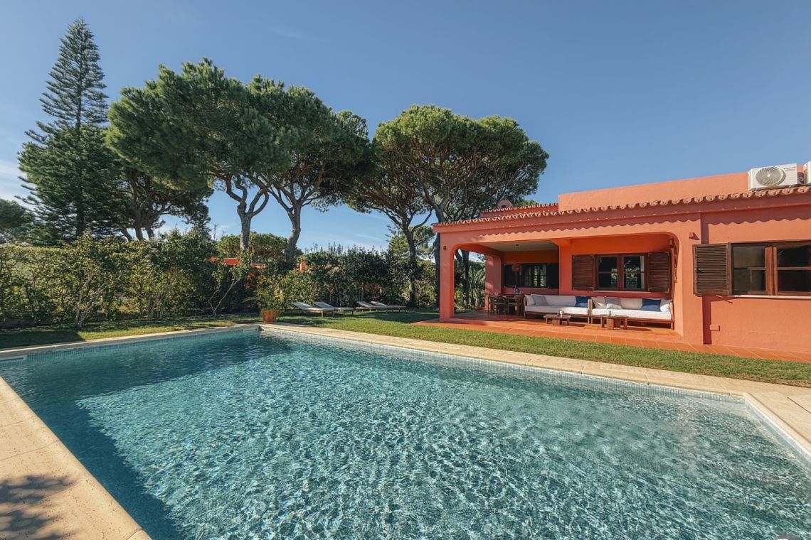 Varana House is a charming four-bedroom villa ideally located between the prestigious golf courses of Vilamoura. Inspired by 1970s design, this single-storey property blends character, comfort, and privacy, creating a warm and welcoming atmosphere.