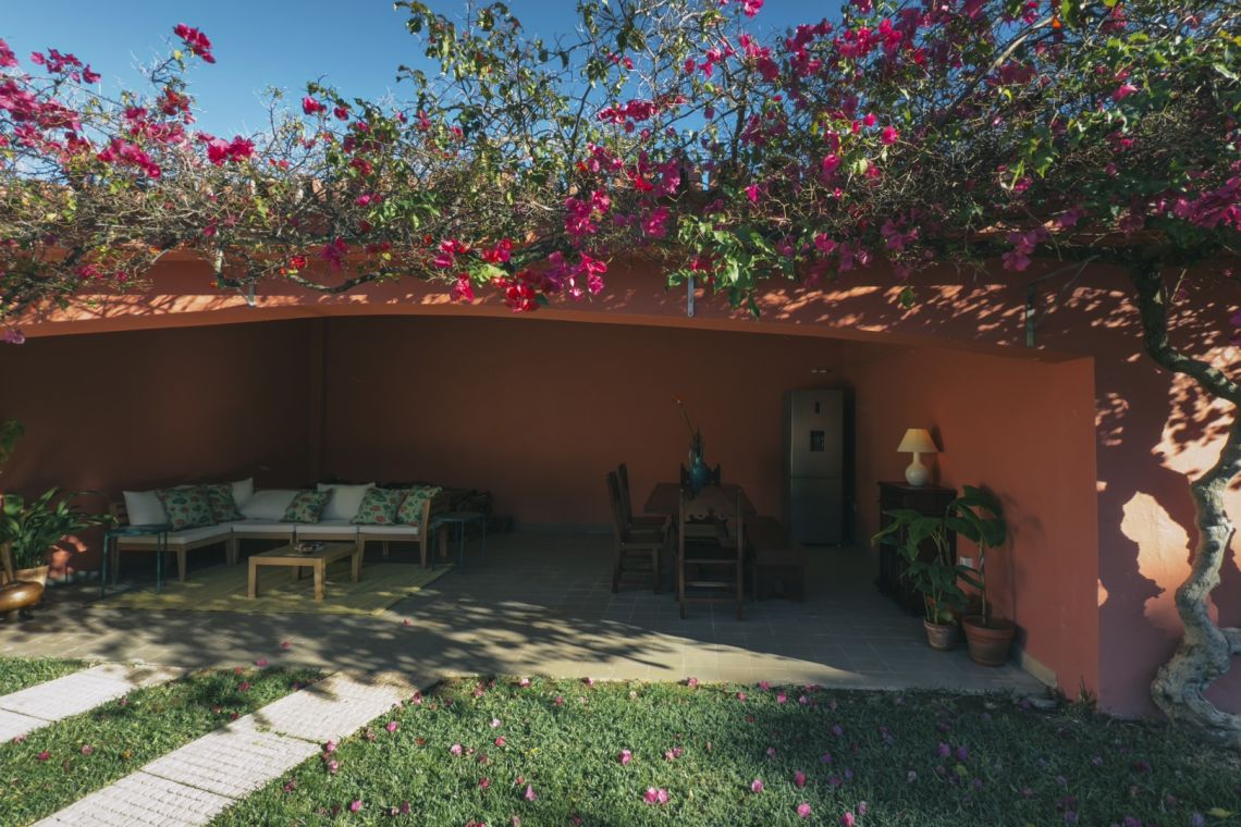 An upper-level terrace, accessed via separate stairs, provides an additional space for dining or relaxing, where you can enjoy warm evenings and star-filled skies.