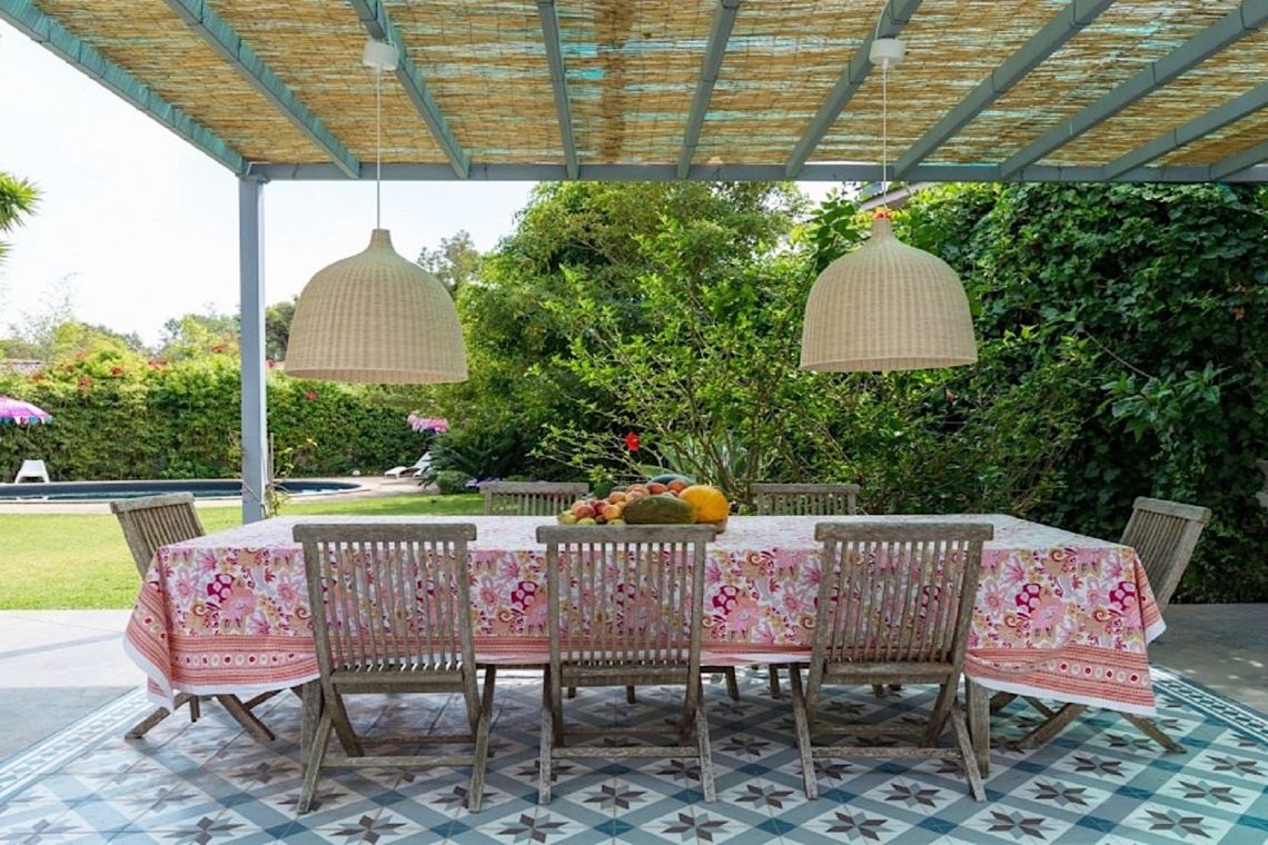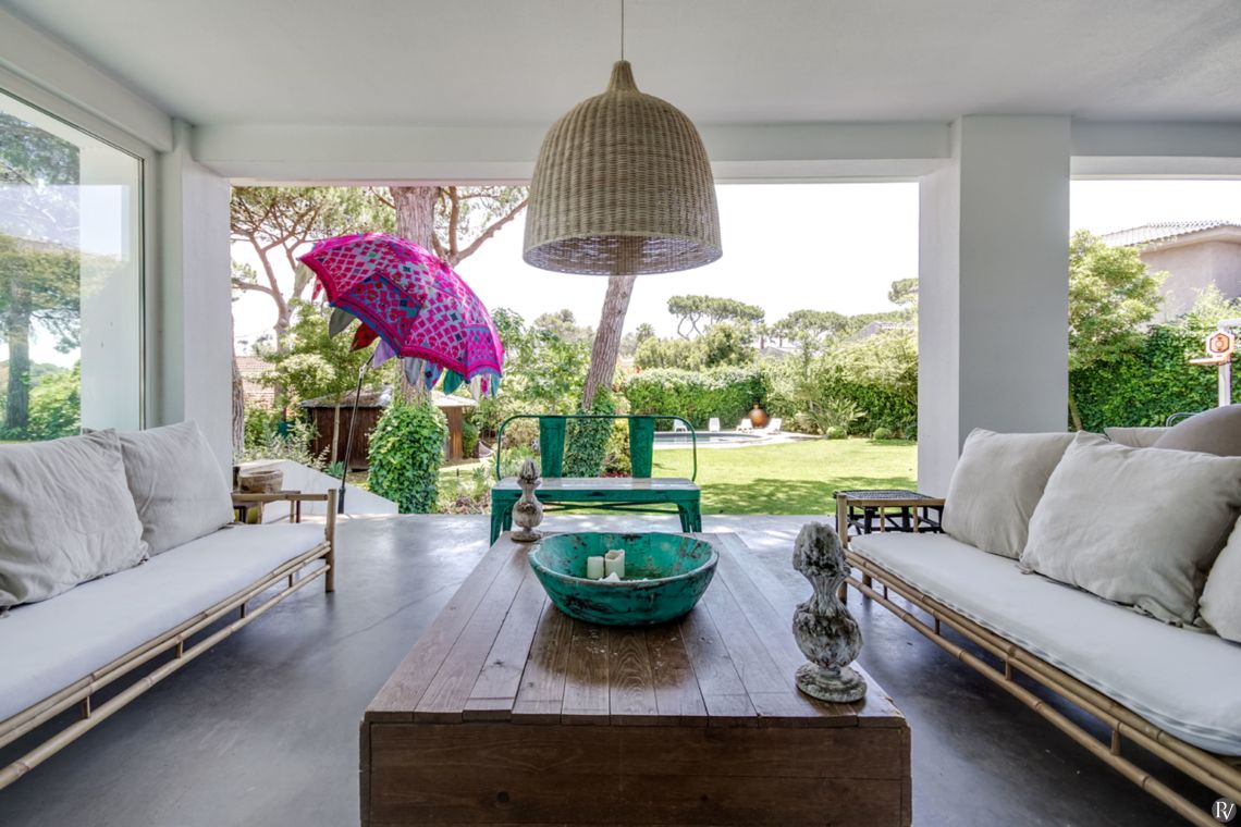 The dining room connects seamlessly to the garden and includes a service door to the fully equipped kitchen and larder, which also provides access to the outdoor dining area. A laundry room completes the layout, with access to a dedicated clothes-drying terrace.