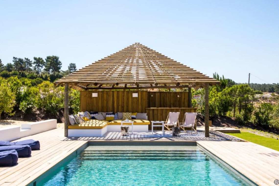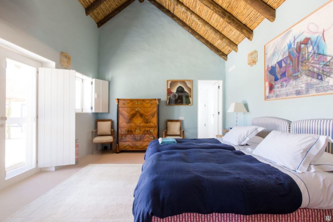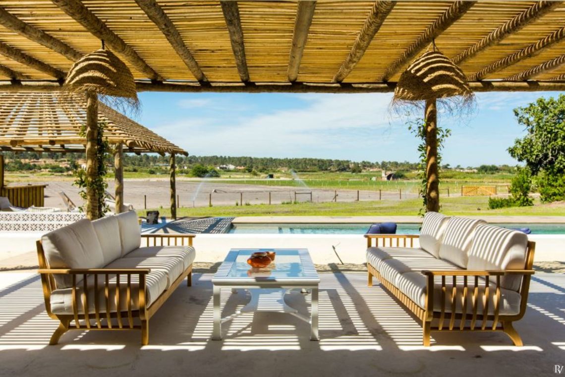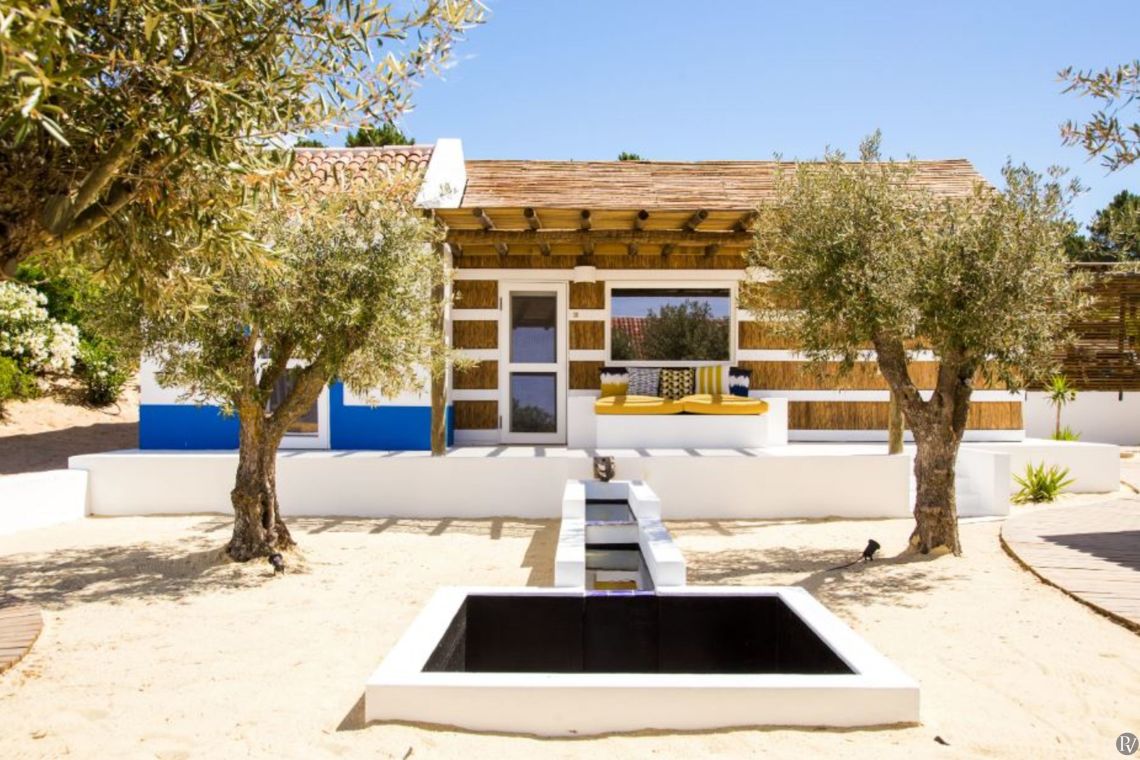 Built in the traditional Comporta beach style, this chic villa features bedroom suites set within individual cabanas and thatched roof terraces designed for al fresco dining and relaxed lounging under the Portuguese sun. With a pool overlooking wildflower fields, the property offers a serene and effortlessly stylish setting.