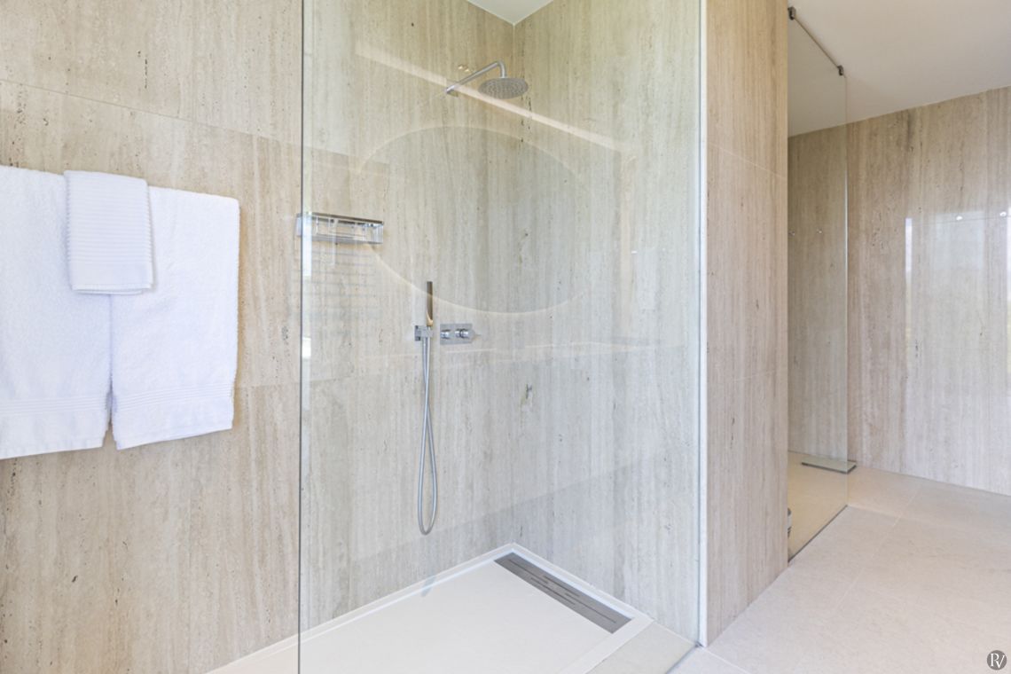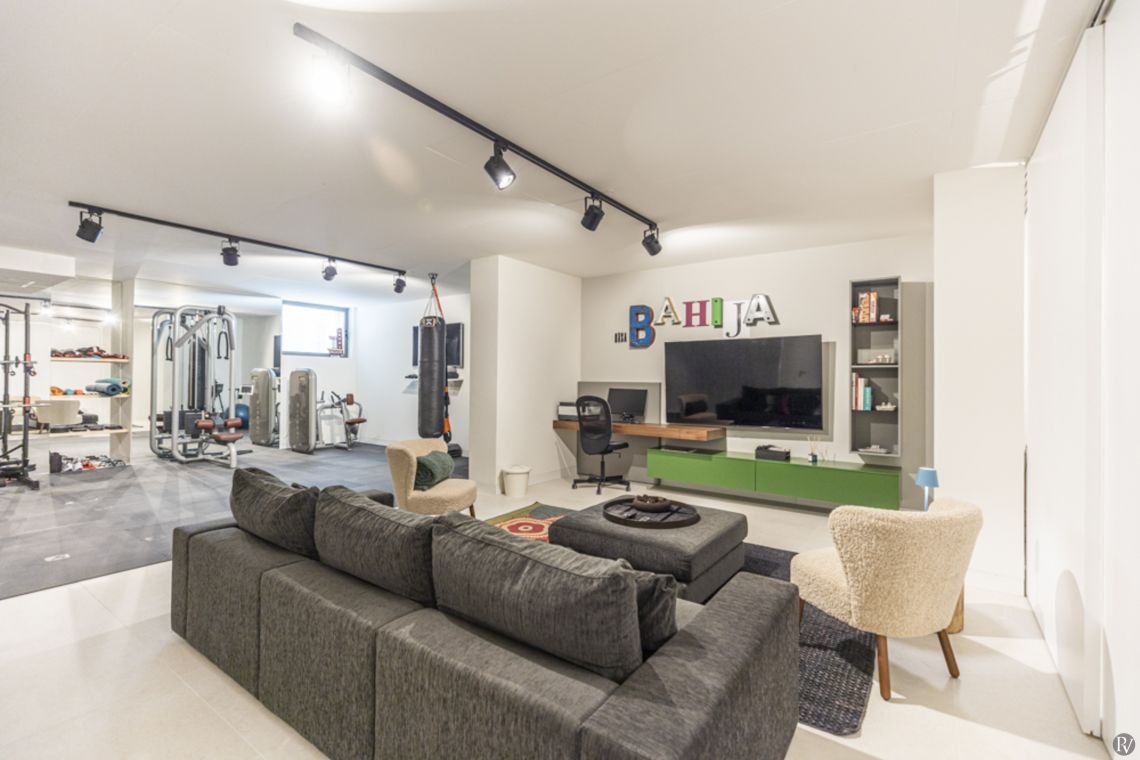 The villa features an open plan living/dining area with a fireplace and direct garden access with a fully equipped kitchen, a fitness centre and TV room
