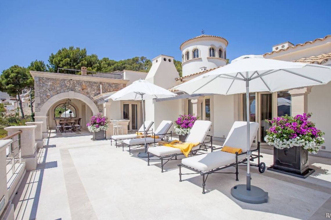 From its dramatic clifftop position on a headland near elegant Puerto Andraxt this unique luxury villa for 12 with pool and 2 Jacuzzi tubs offers spectacular views over the Mediterranean sea and south-west Mallorcan rugged coastline.