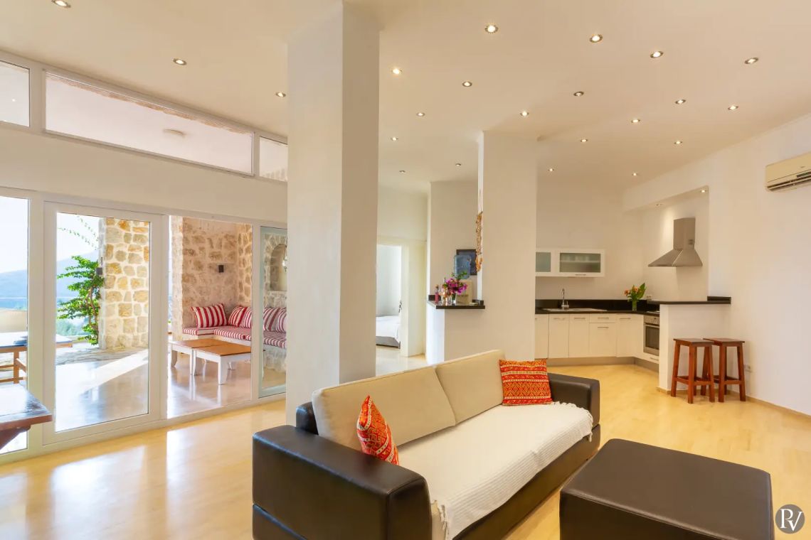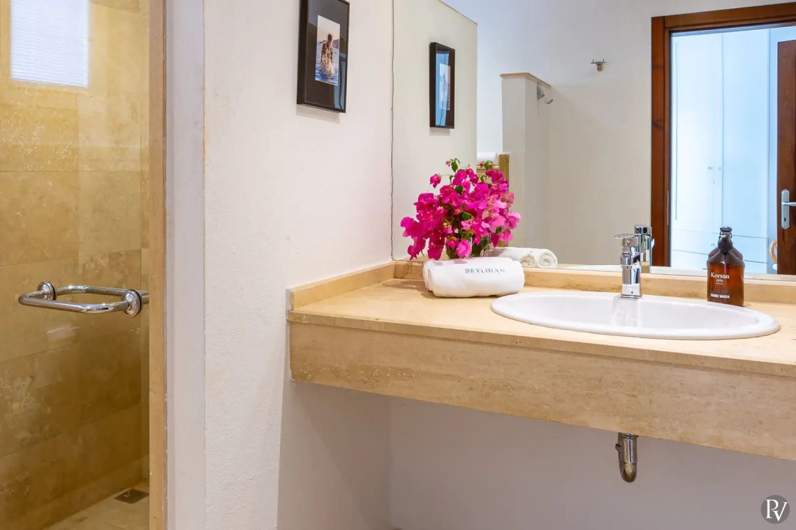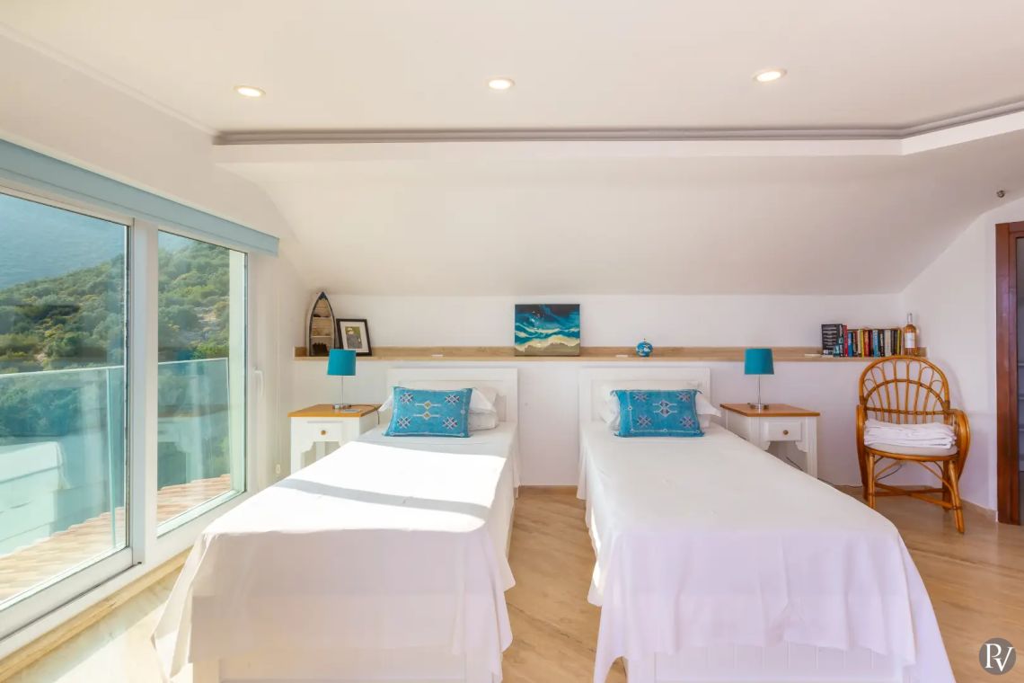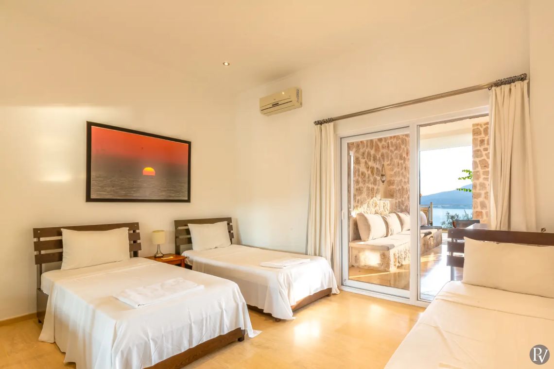 Accessed via a separate stone staircase is an apartment under BeyliHan built into the rocks. The apartment sleeps 5. A twin bedded room and a triple room. Both rooms have ensuite shower rooms finished to the same standard as the villa. There is a well equipped open plan kitchen and sitting room. The apartment enjoys similar views to the villa.
