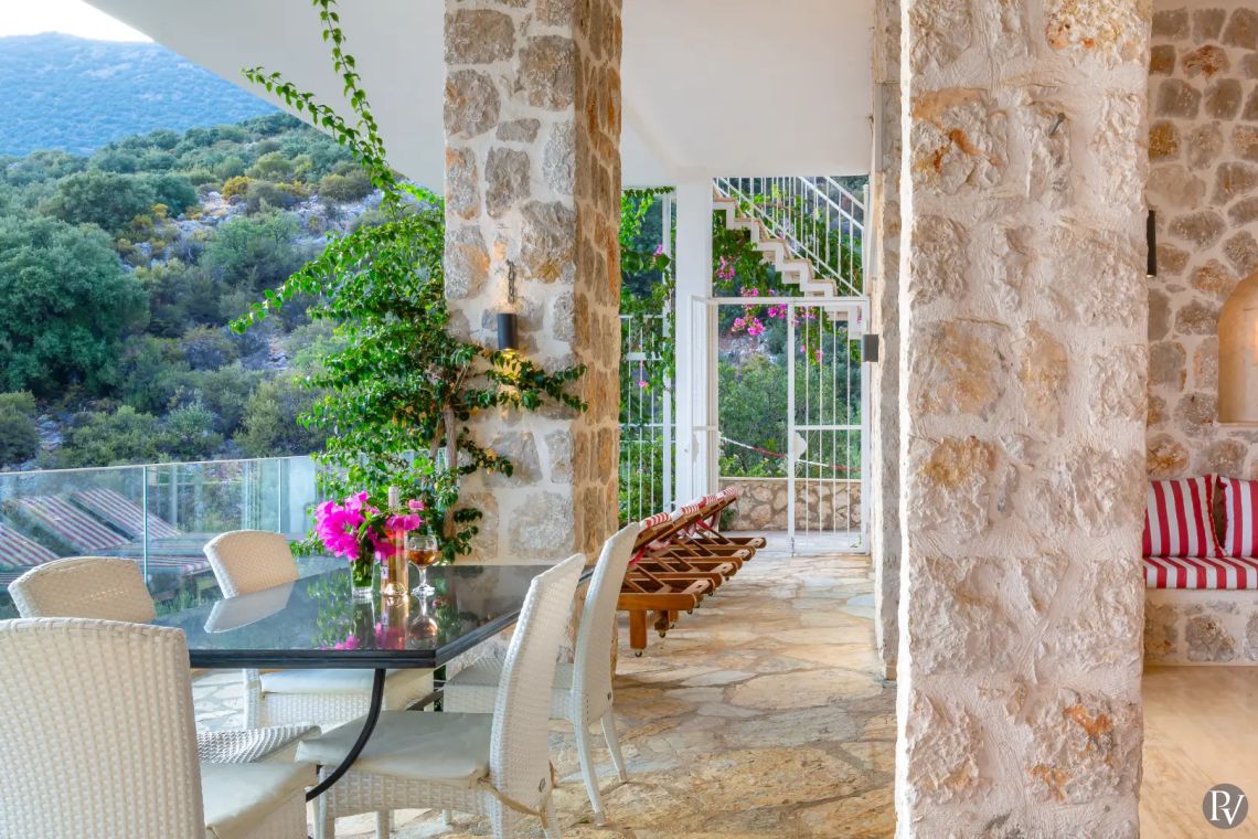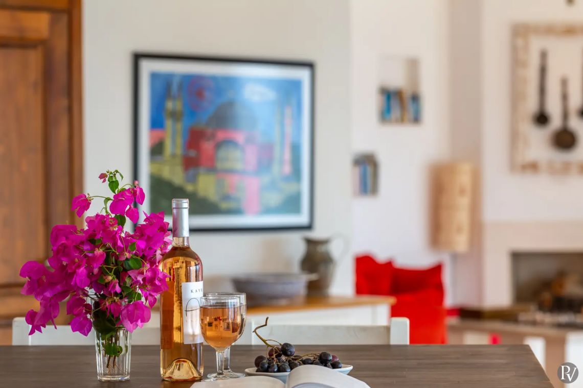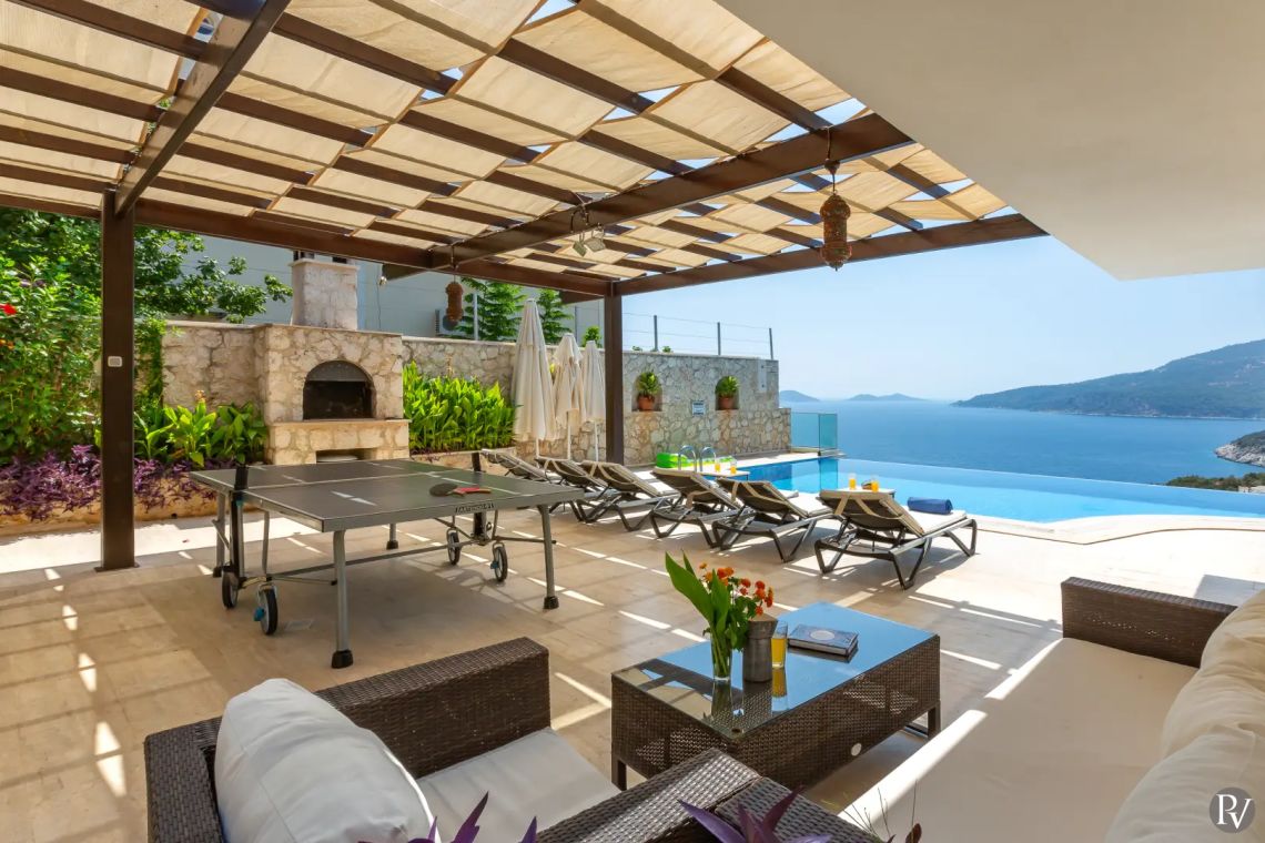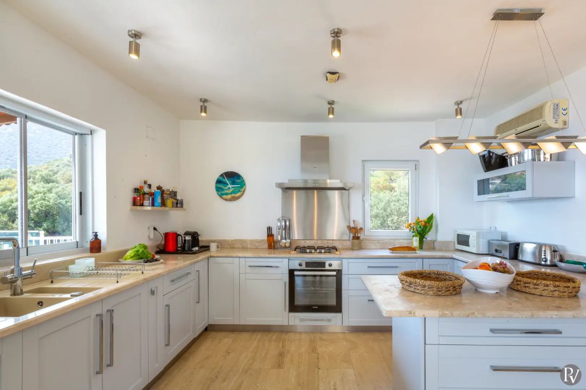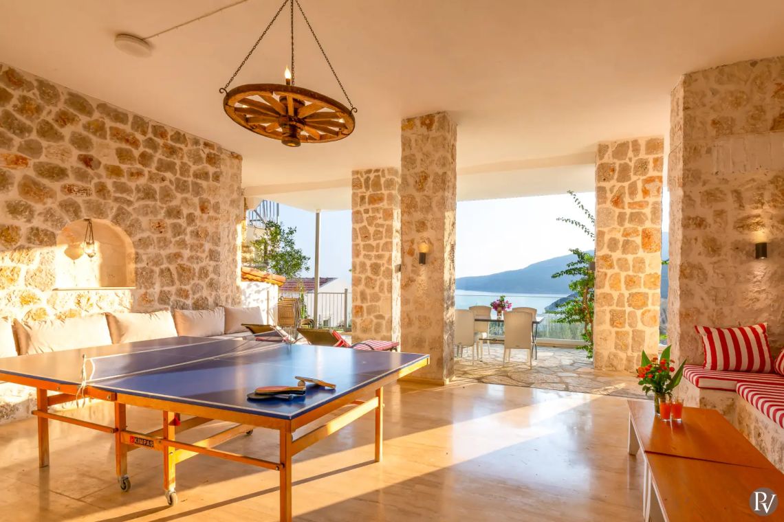 A stunning villa with private pool and uninterrupted sea views across Kalamar bay. This property has been built to the utmost standard from local stone and marble. The spacious open-plan kitchen opens onto a large terrace through a panoramic five metre French window, where you will find a large infinity pool visually joining the turquoise waters of the Mediterranean. The terrace offers a built-in stone barbeque, table tennis, cushioned sun loungers and seating areas.
