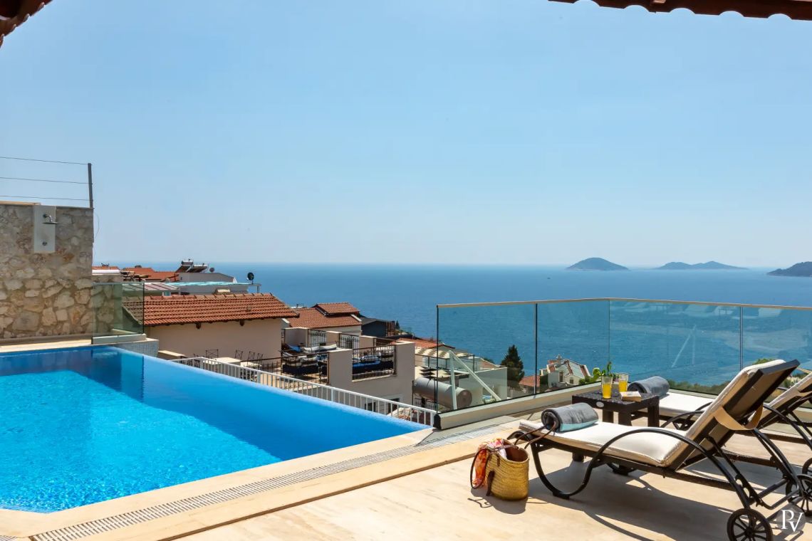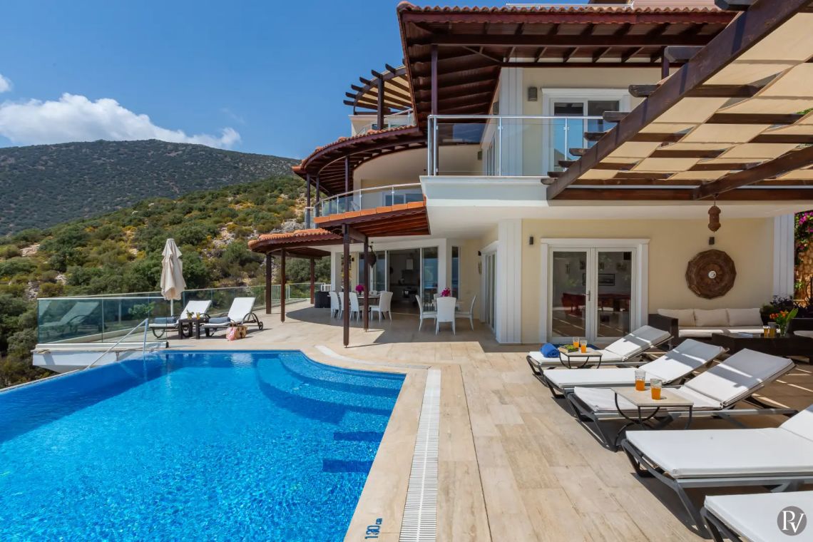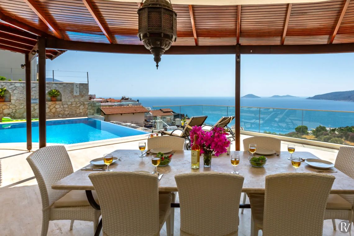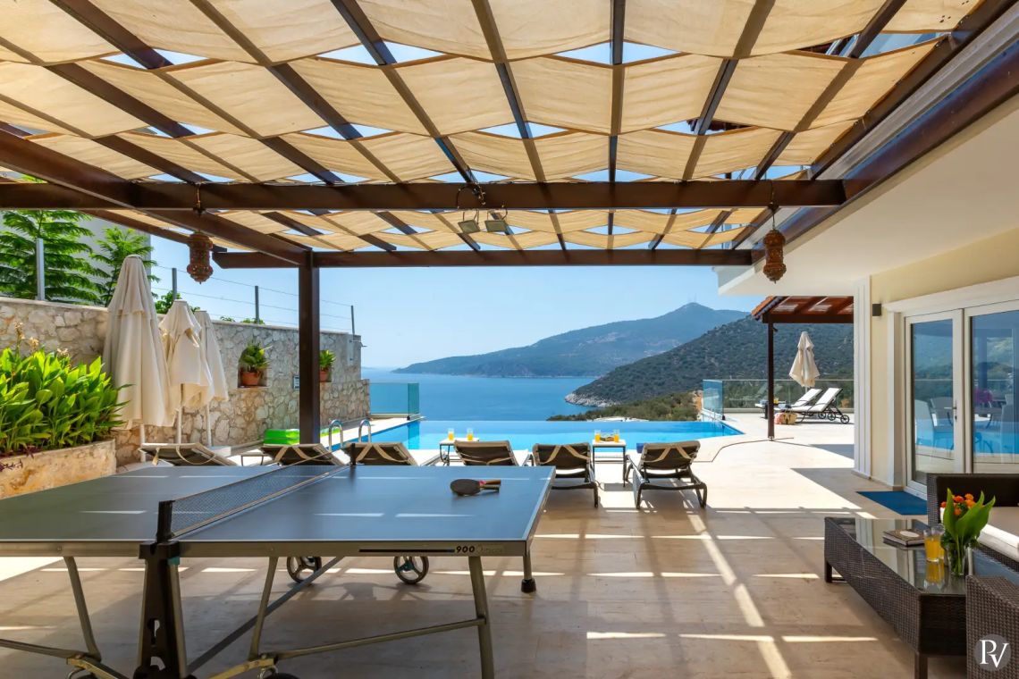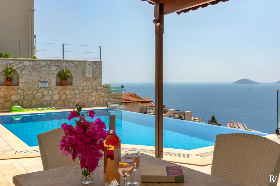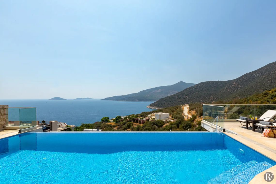 A stunning villa with private pool and uninterrupted sea views across Kalamar bay. This property has been built to the utmost standard from local stone and marble. The spacious open-plan kitchen opens onto a large terrace through a panoramic five metre French window, where you will find a large infinity pool visually joining the turquoise waters of the Mediterranean. The terrace offers a built-in stone barbeque, table tennis, cushioned sun loungers and seating areas.