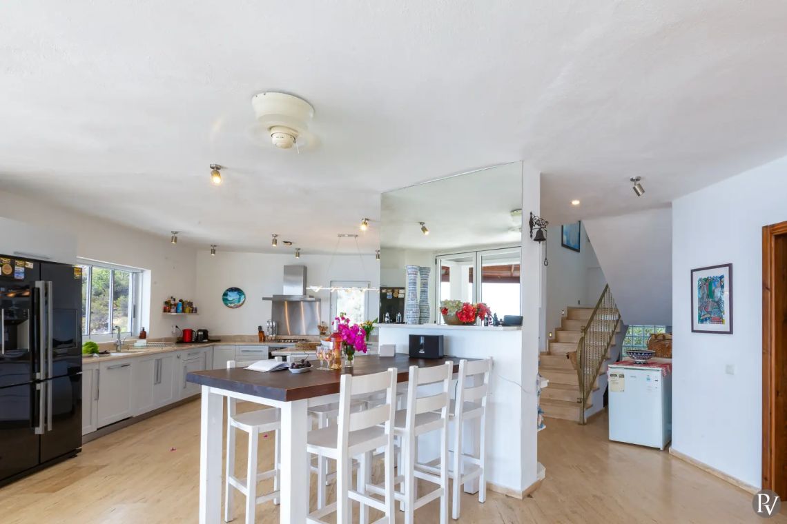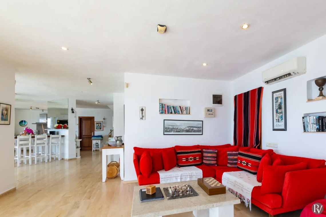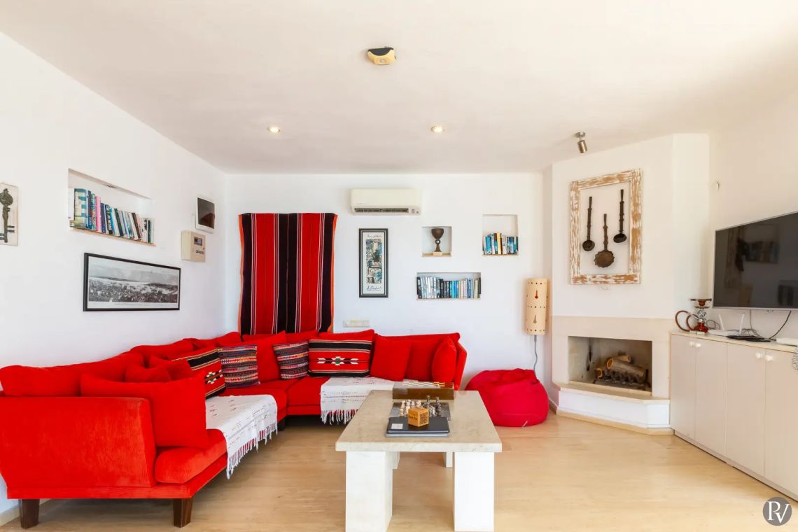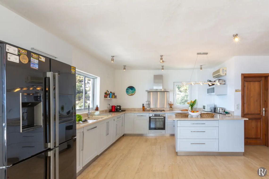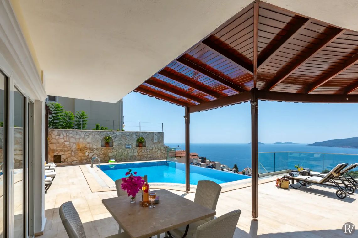 A stunning villa with private pool and uninterrupted sea views across Kalamar bay. This property has been built to the utmost standard from local stone and marble. The spacious open-plan kitchen opens onto a large terrace through a panoramic five metre French window, where you will find a large infinity pool visually joining the turquoise waters of the Mediterranean. The terrace offers a built-in stone barbeque, table tennis, cushioned sun loungers and seating areas.