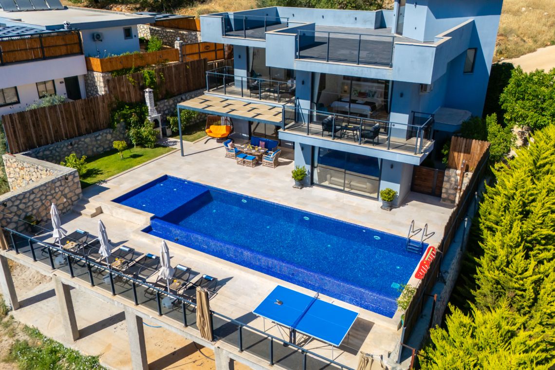 Villa Pasha is a modern villa located just 4.5 kilometers from the lively coastal town of Kalkan. Finished in 2022, this spacious villa features a bright, open-plan kitchen, dining, and living area with seamless access to a covered terrace and private pool, ideal for enjoying the stunning Mediterranean views. The ground floor includes a twin bedroom with an en suite shower room and pool access. The first-floor hosts two double bedrooms, each with an en suite shower room and private balcony. The second floor offers a panoramic roof terrace. Outdoors, guests can relax on the open terrace with sunbeds, dine under the covered area, or enjoy a barbecue and table tennis. Set in a quiet neighbourhood, Villa Pasha combines modern comfort with easy access to Kalkan’s vibrant restaurants, beach clubs, and water sports.