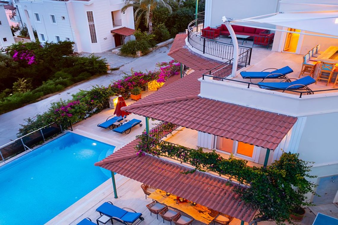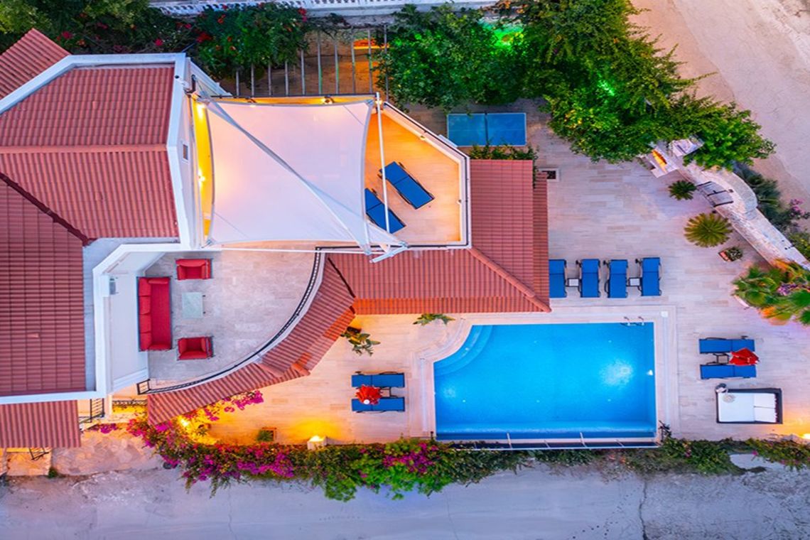 The villa is a leisurely 20 minute walk to Kalkan Marina and the old town. Situated a 150m from the sea, the nearest beach is Kulube Beach, which is a 3 minutes meander down the hill.