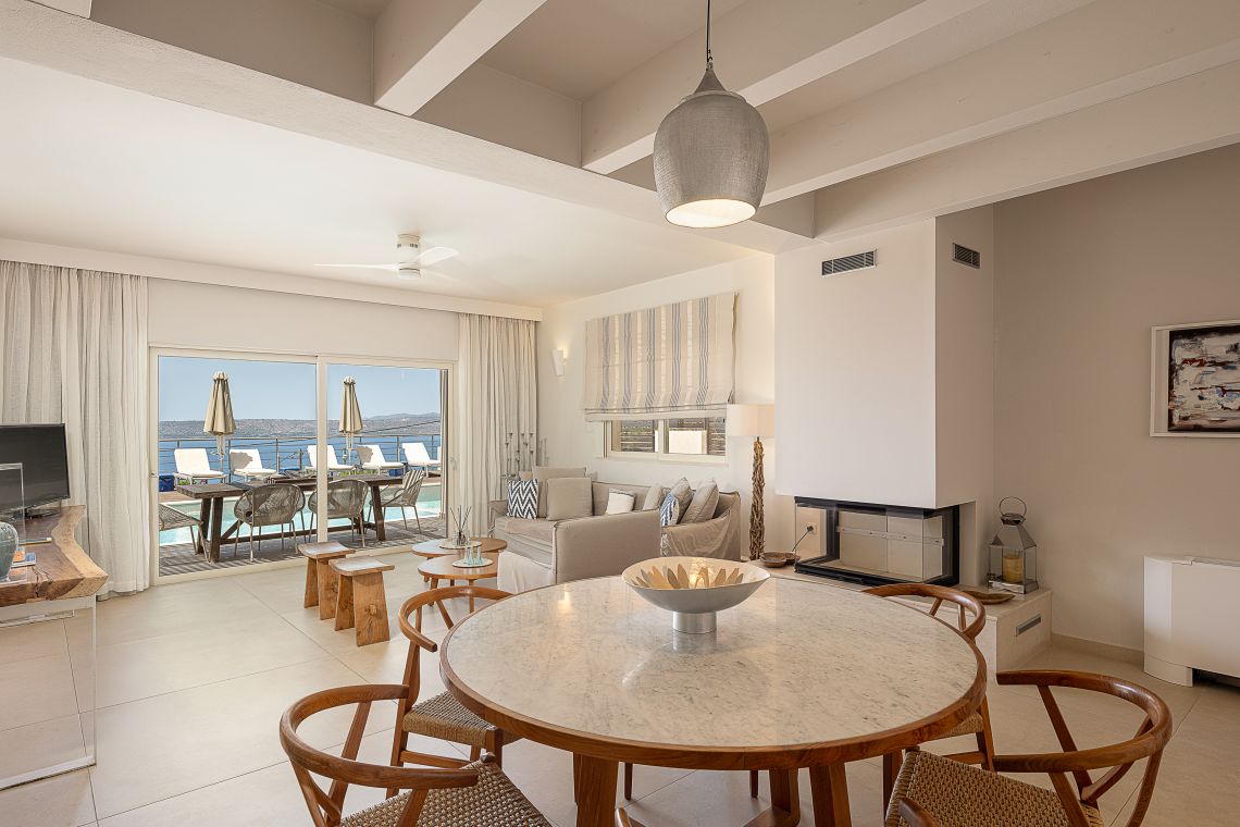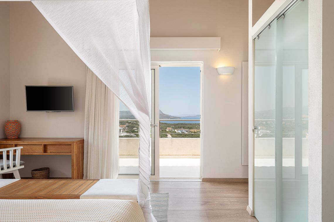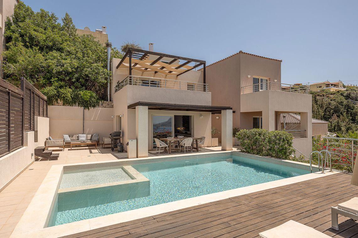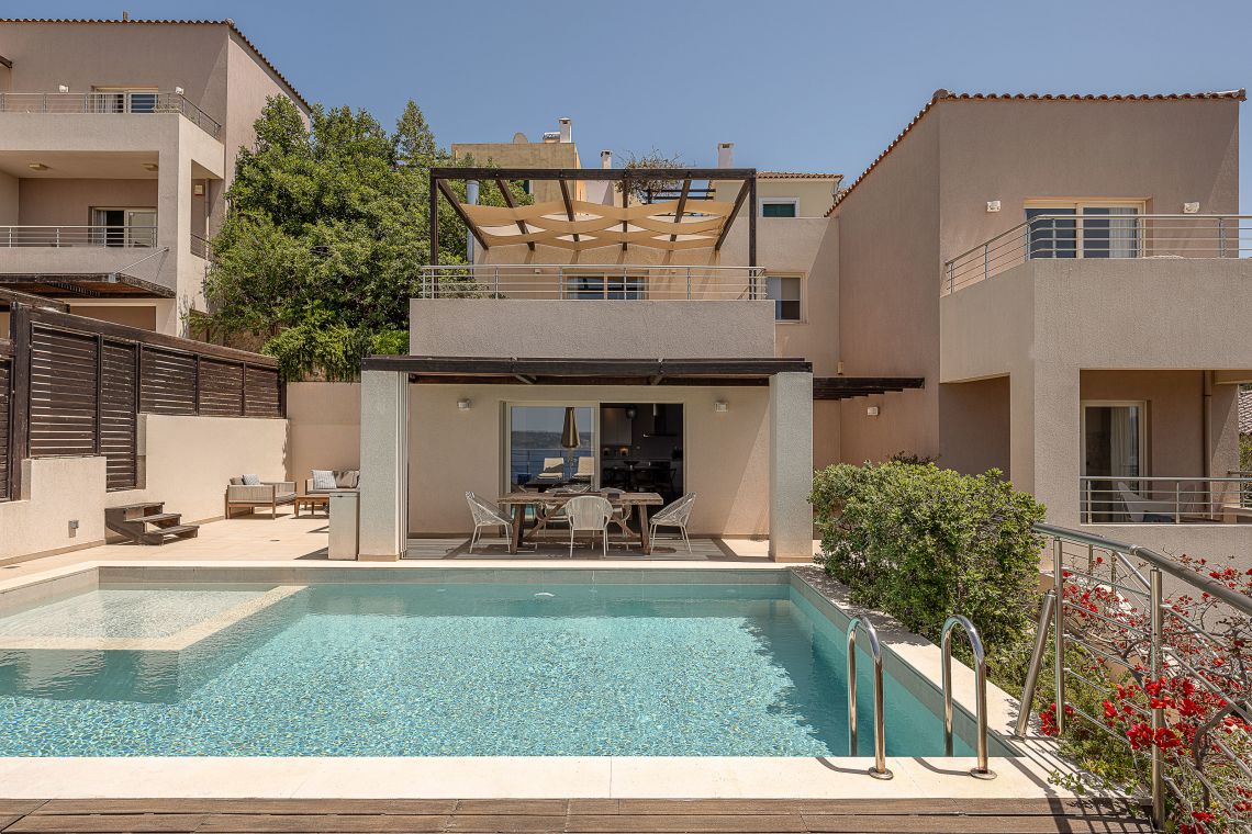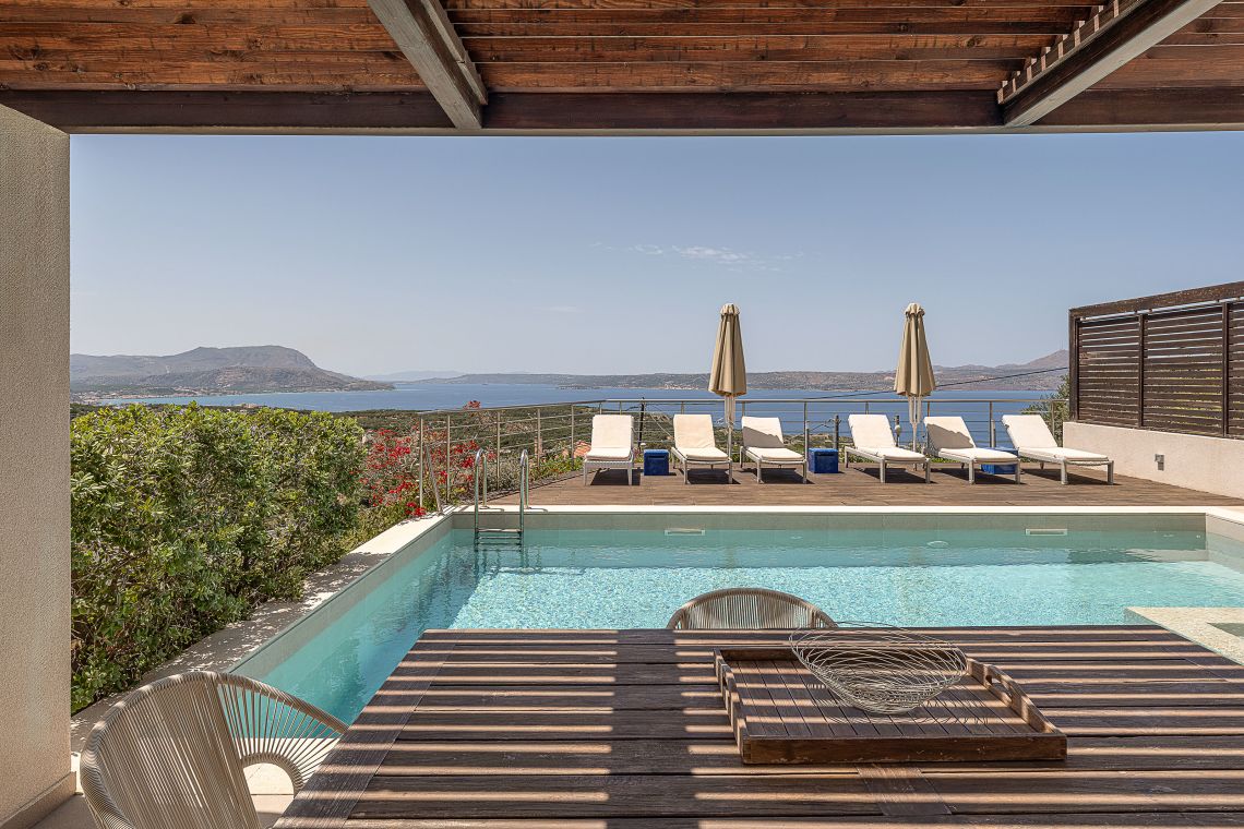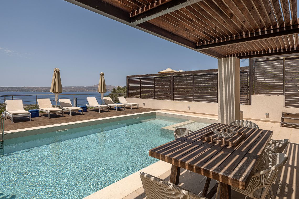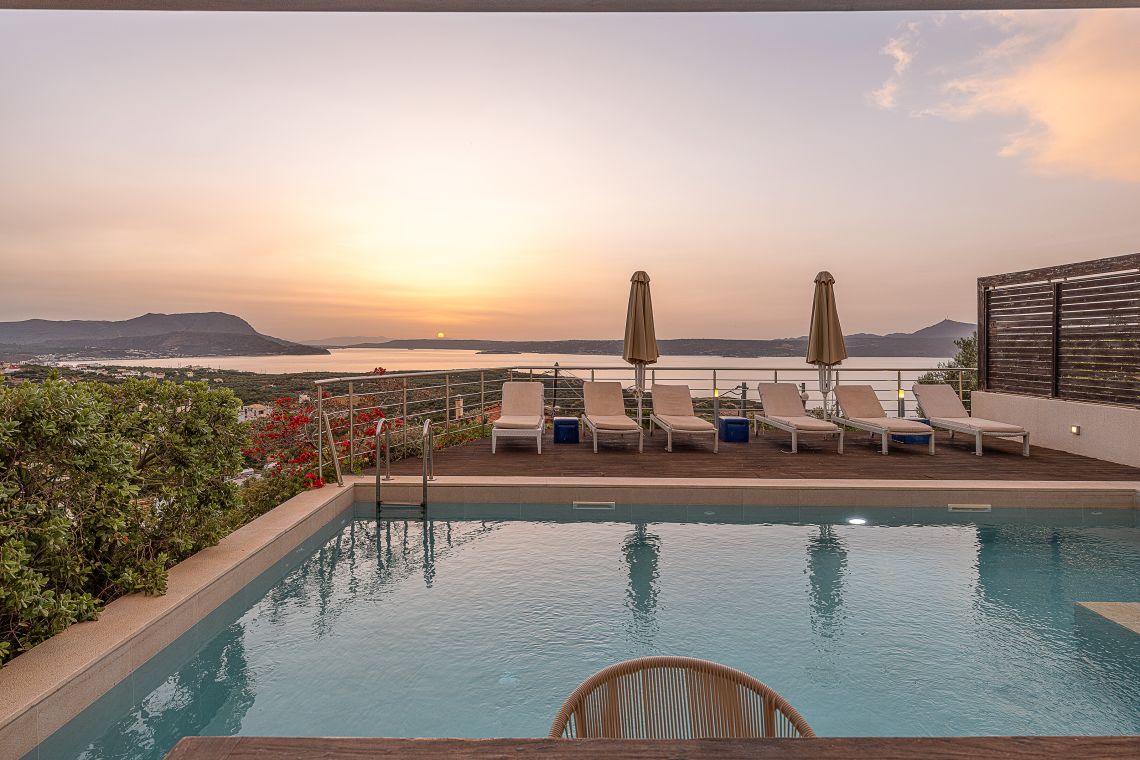 Aley is a 3 bedroom Premier Villas part of a newly completed estate located on the slopes of a hill outside of Chania, North Western Crete, Greece. The villa enjoys fabulous views of both the White Mountains on one side and blue expanse of Souda Bay, on the other.