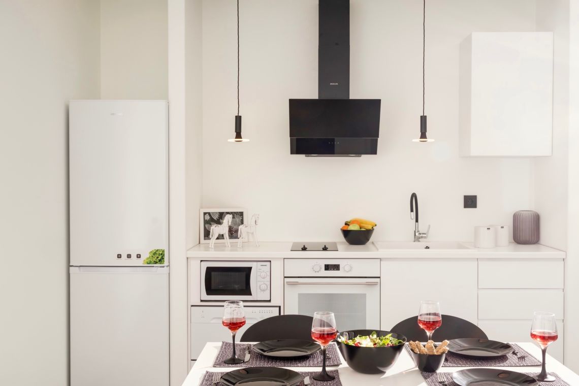 The villa features a spacious open-plan lounge with an adjoining fully equipped kitchen and dining area. Large patio doors open directly onto the pool terrace, creating a seamless flow between indoor and outdoor living.