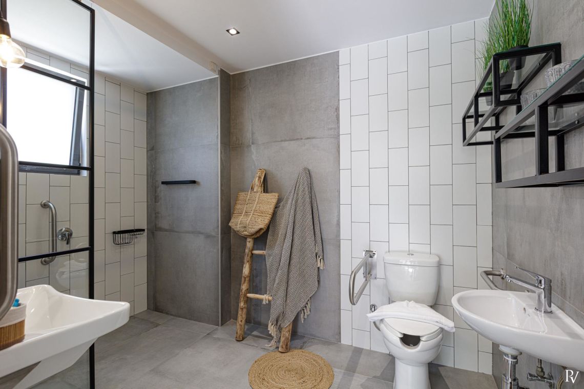 Both bathrooms feature spacious showers and modern amenities designed for accessibility