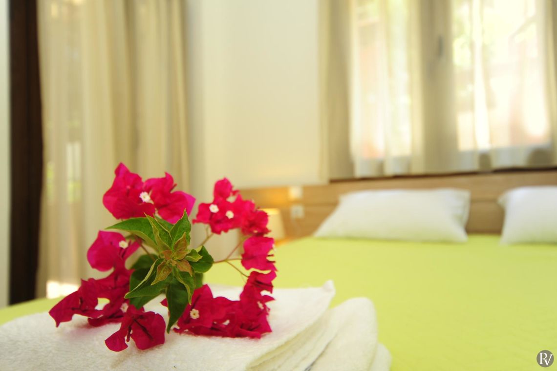 The bedrooms at Villa Orsa are thoughtfully designed to offer comfort and relaxation, complete with quality furnishings and air conditioning.