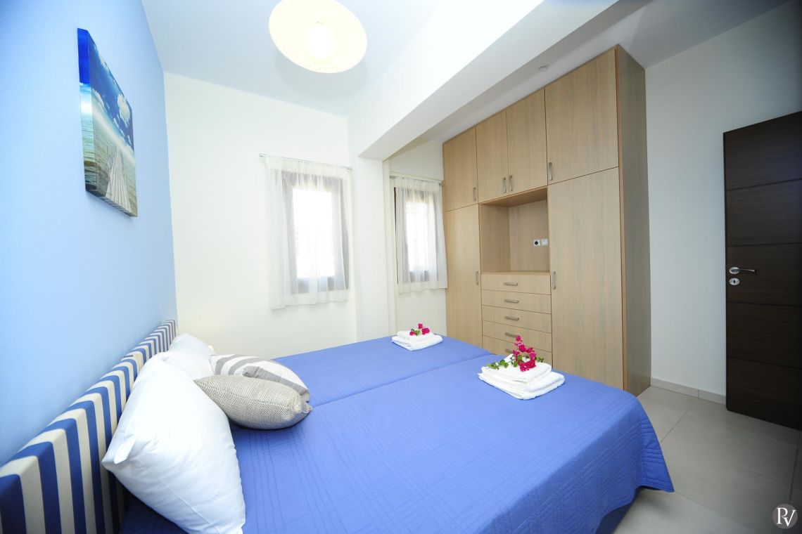 Bedroom 1 - 2 x single bed, air conditioning, Bed Linen & Towels